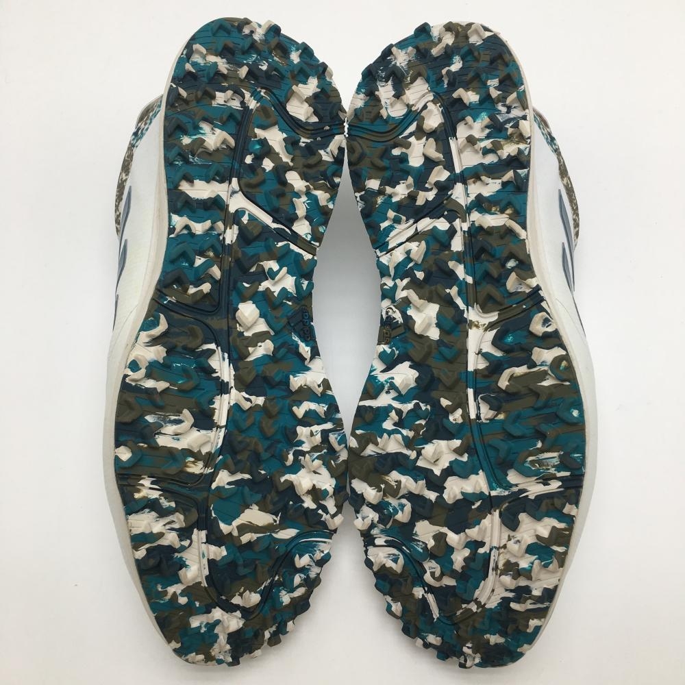 アディダス ゴルフシューズ 白×グリーンブルー系 一部柄 HP3237 スパイクレス メンズ 30.0 ゴルフウェア adidas