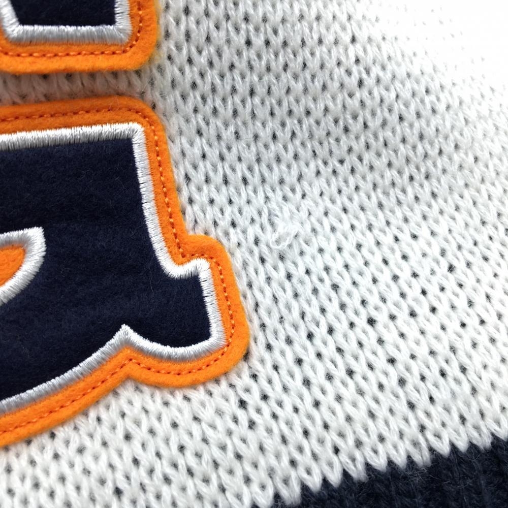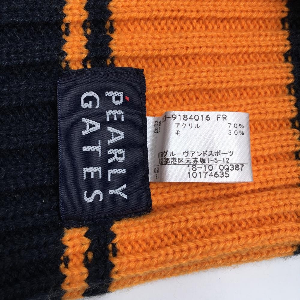 【美品】パーリーゲイツ マフラー 白×ネイビー×オレンジ ロング丈 ビッグワッペン FR ゴルフウェア PEARLY GATES