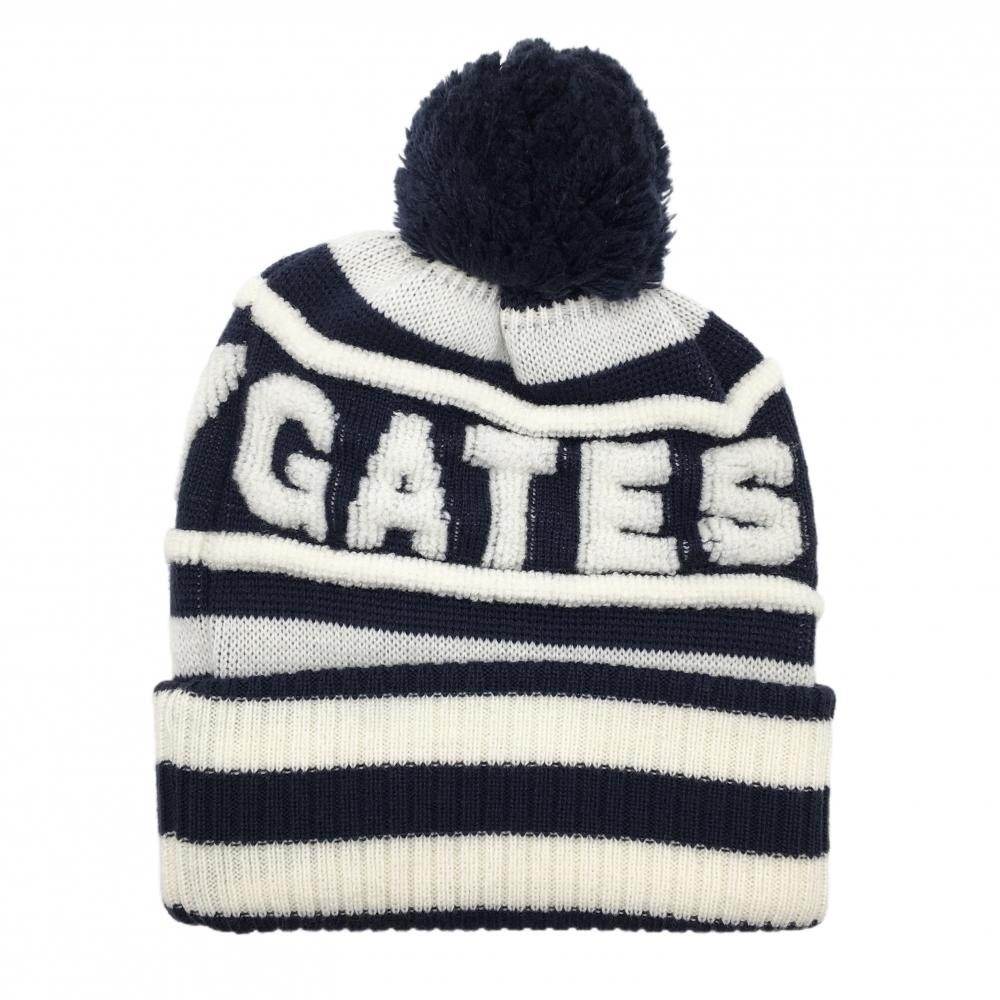 【新品】パーリーゲイツ ニット帽 ネイビー×白 ボーダー 日本製 ボンボン付 FR ゴルフウェア PEARLY GATES