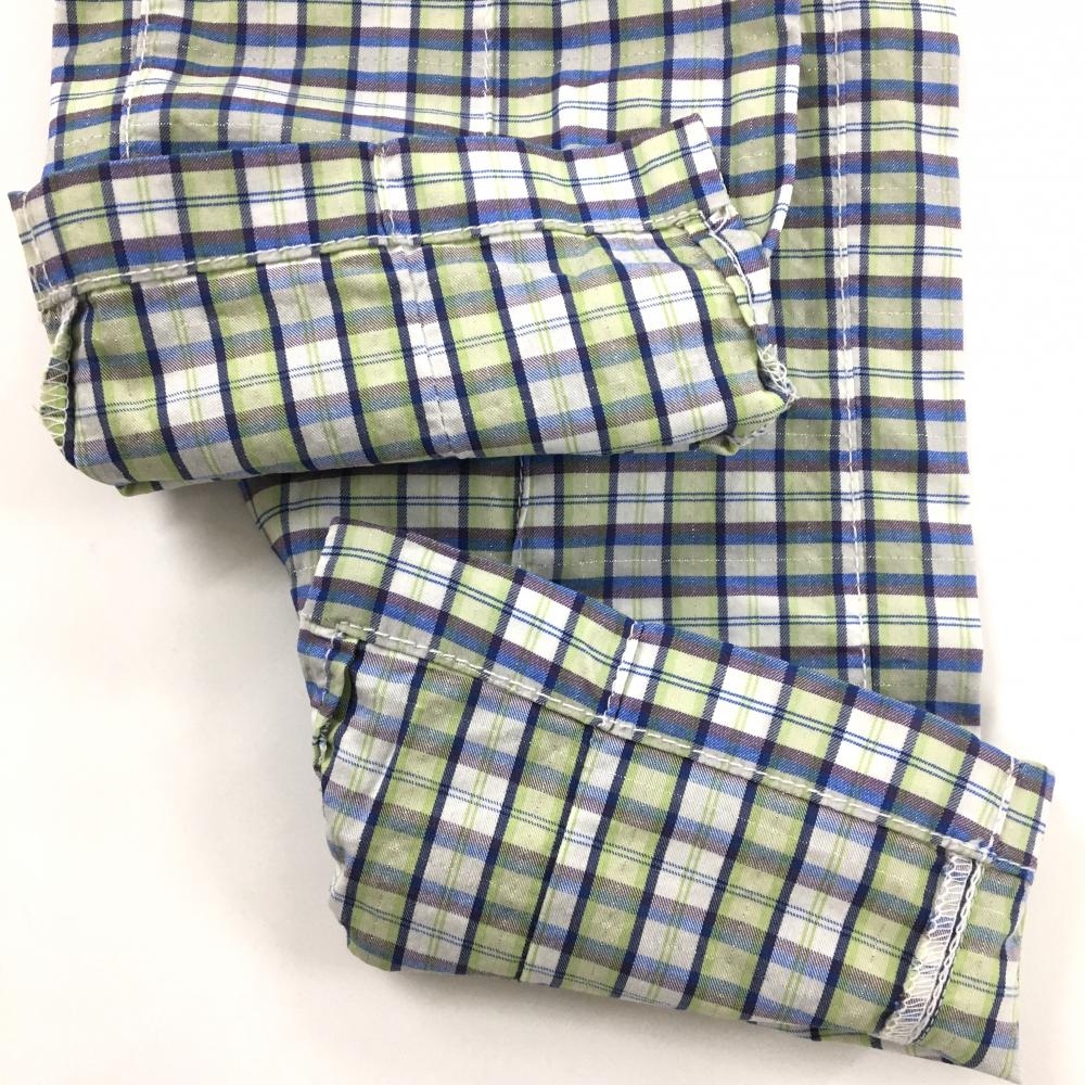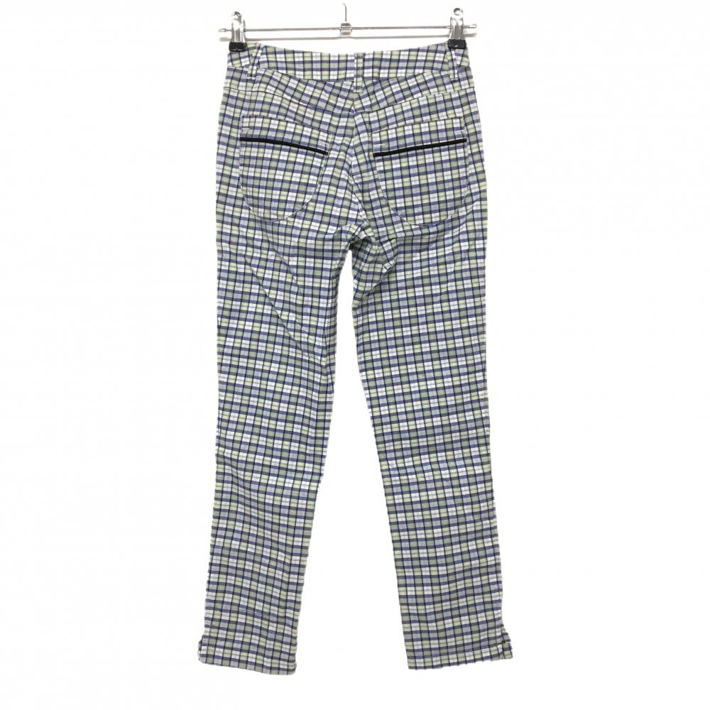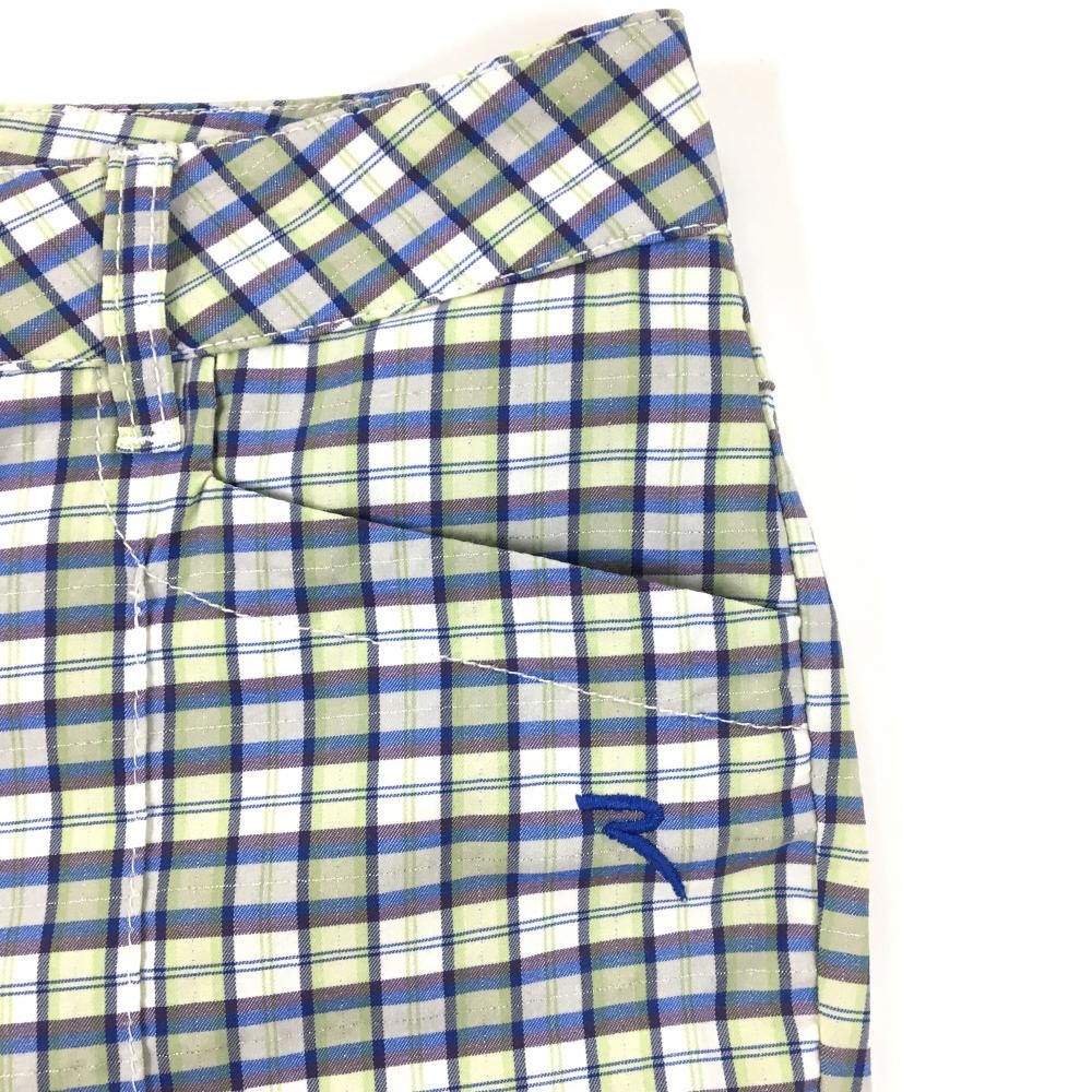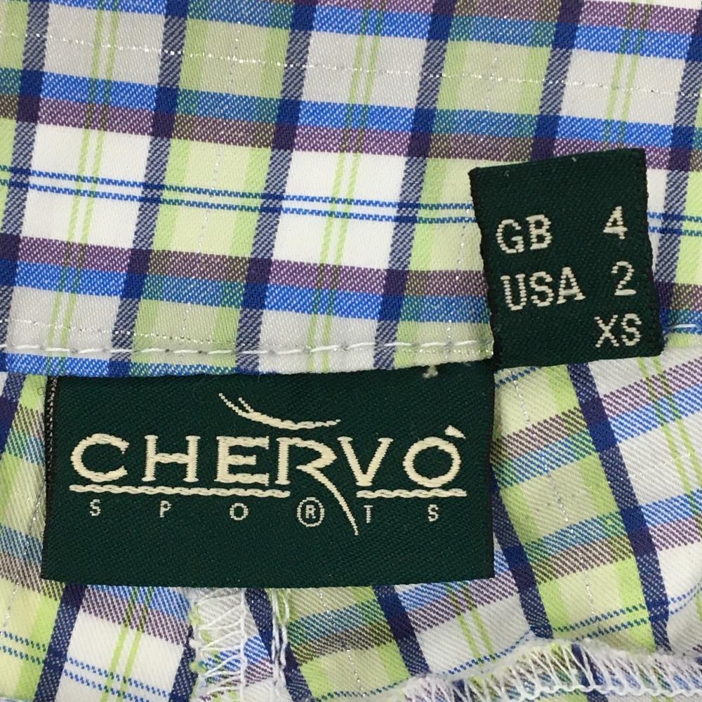 【美品】シェルボ パンツ 白×ライトグリーン チェック柄 ラメ糸混 ロゴ刺しゅう ストレッチ レディース XS ゴルフウェア CHERVO