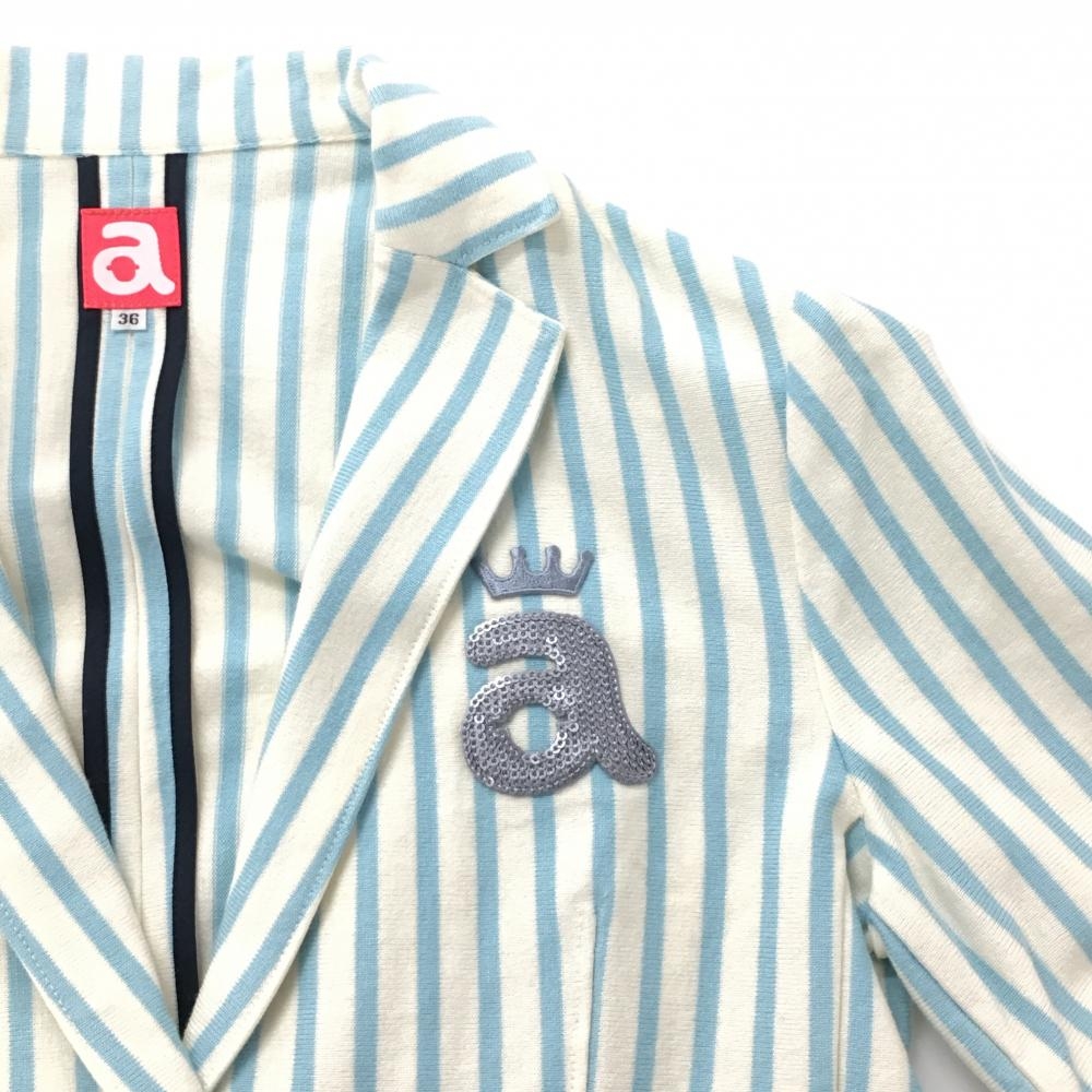 アルチビオ テーラードジャケット アイボリー×ライトブルー ストライプ コットン100% レディース 36(S) ゴルフウェア archivio