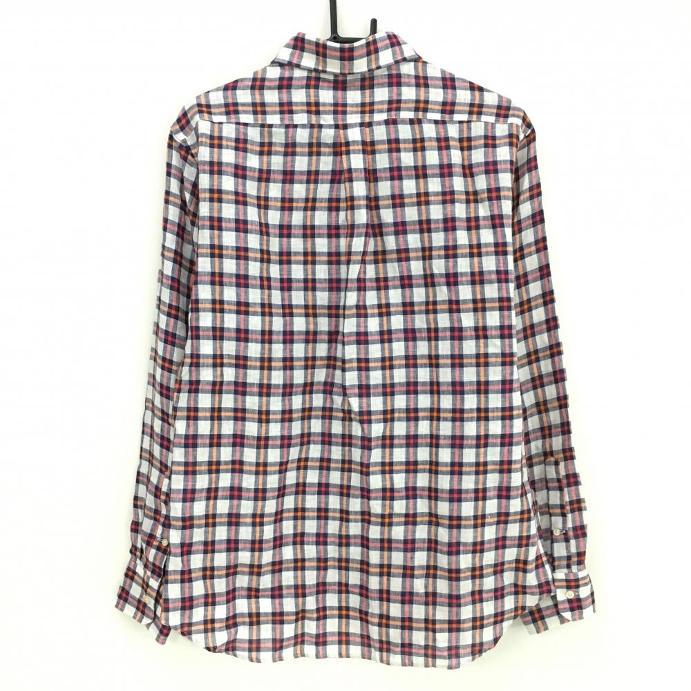 【超美品】サイコバニー 長袖シャツ 白×レッドピンク系×オレンジ チェック 麻100% メンズ XL ゴルフウェア Psycho Bunny