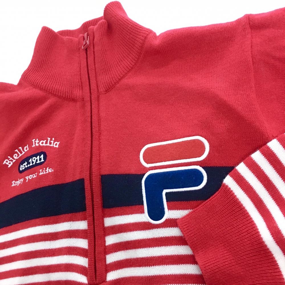 【超美品】フィラゴルフ ハイネックセーター レッド×白 ボーダー ハーフジップ ウール混 ニット レディース L ゴルフウェア FILA GOLF