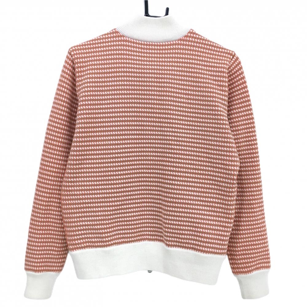 【超美品】ミラショーンスポーツ ニットジャケット オレンジ×ベージュ 総柄 蓄熱裏地 レディース 42 ゴルフウェア mila schon sports