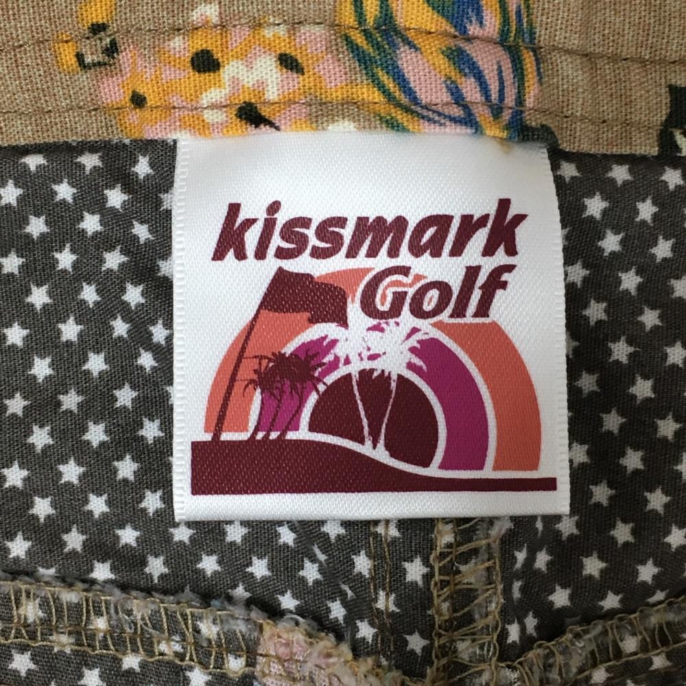 【超美品】キスマークゴルフ カーゴパンツ ベージュ×ピンク 花柄 レディース 13(XL) ゴルフウェア kissmarkGolf