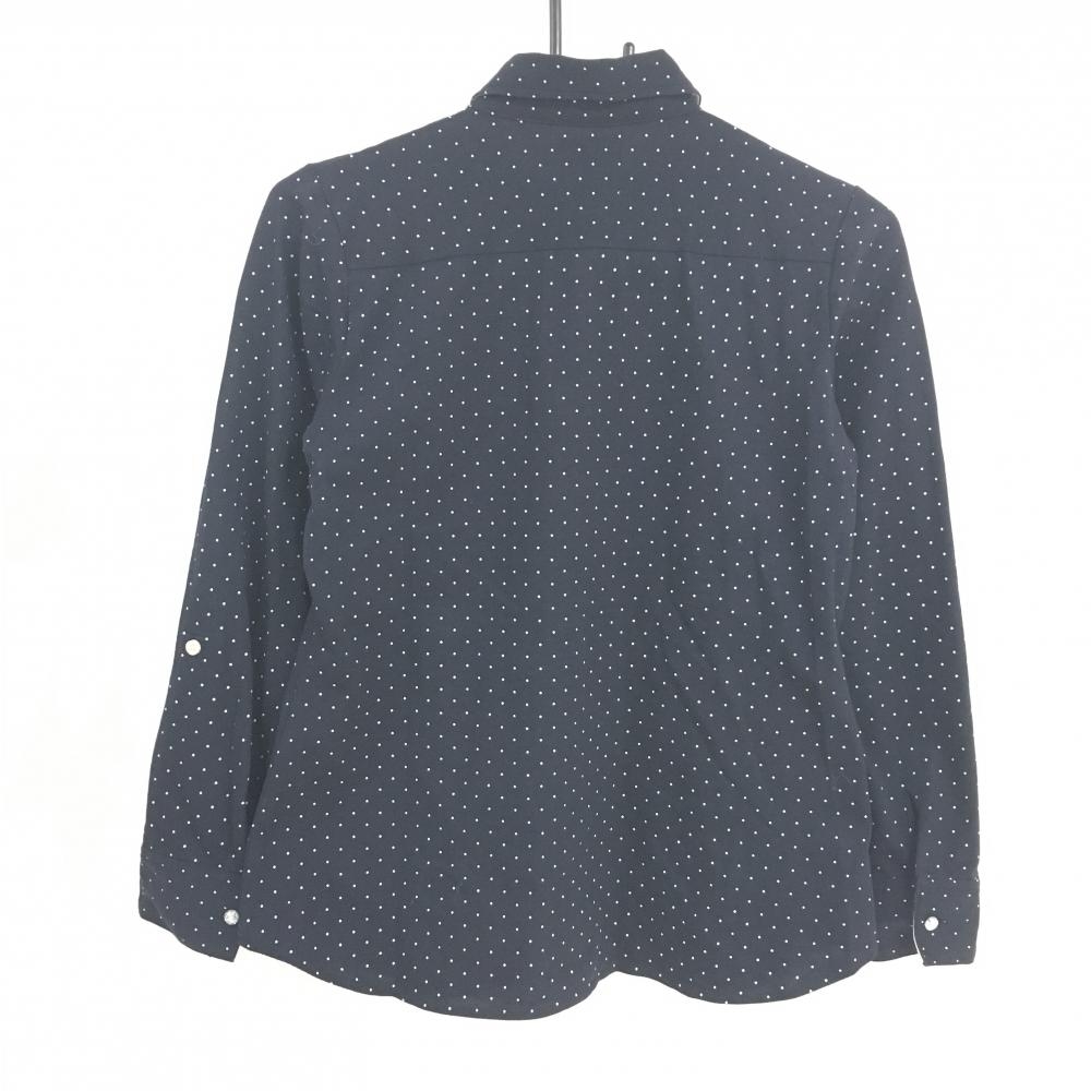 【美品】サマンサタバサNo.7 長袖シャツ ネイビー×白 ドット柄 ロゴワッペン レディース 38(M) ゴルフウェア Samantha Thavasa