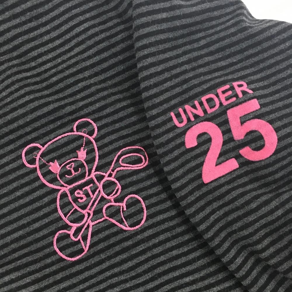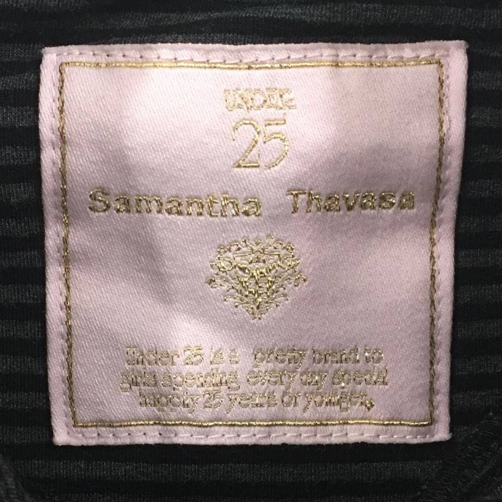 【美品】サマンサタバサUNDER25 長袖タートルネックシャツ ダークグレー×黒 ボーダー レディース M ゴルフウェア Samantha Thavasa