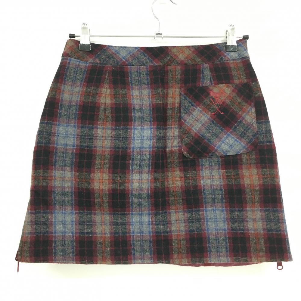 【美品】アシュワース 中綿リバーシブルスカート グレー×ワインレッド チェック柄 表ウール 裏中綿 レディース S ゴルフウェア ASHWORTH