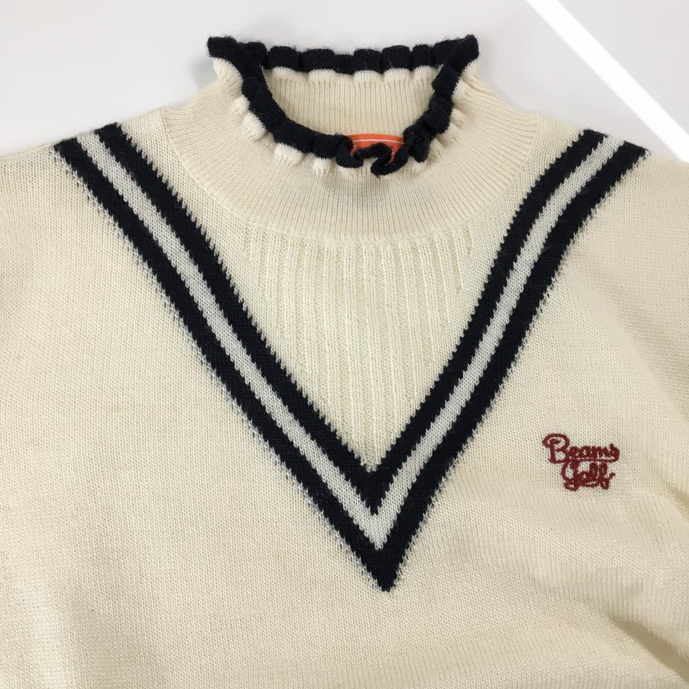【美品】ビームスゴルフ ハイネックセーター 白×ネイビー ロゴレッド ウール混 ニット レディース M ゴルフウェア BEAMS GOLF