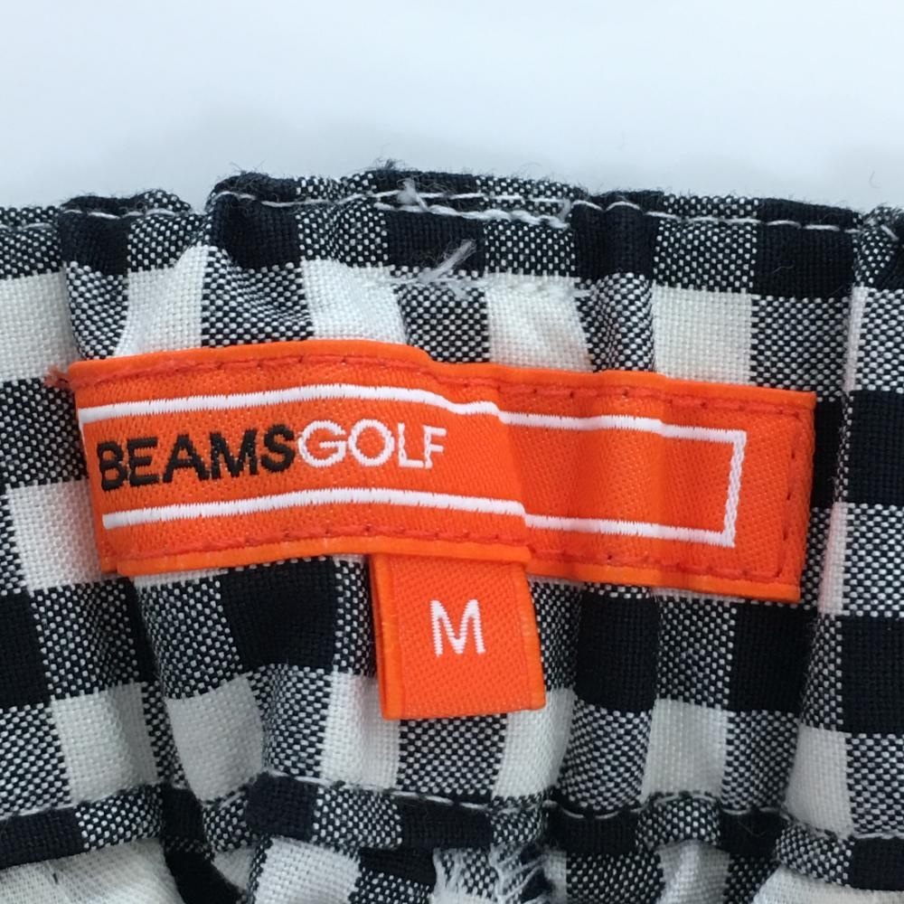 【美品】ビームスゴルフ 半端丈パンツ 白×黒 チェック ウエスト一部ゴム レディース M ゴルフウェア BEAMS GOLF