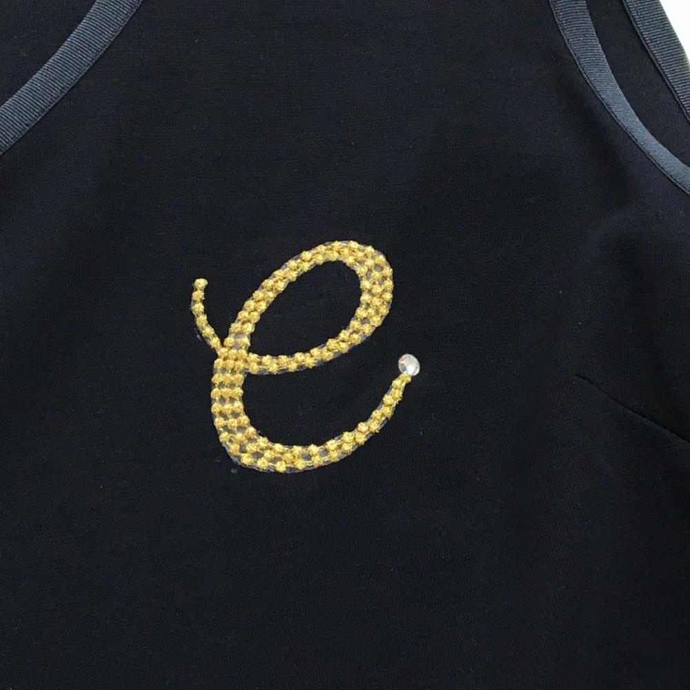 【超美品】エフィカス ノースリーブワンピース ネイビー×ベージュ スカートロゴ総柄 ベルト付 レディース 2(M) ゴルフウェア efficace