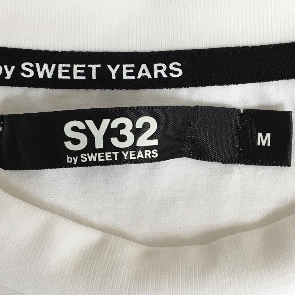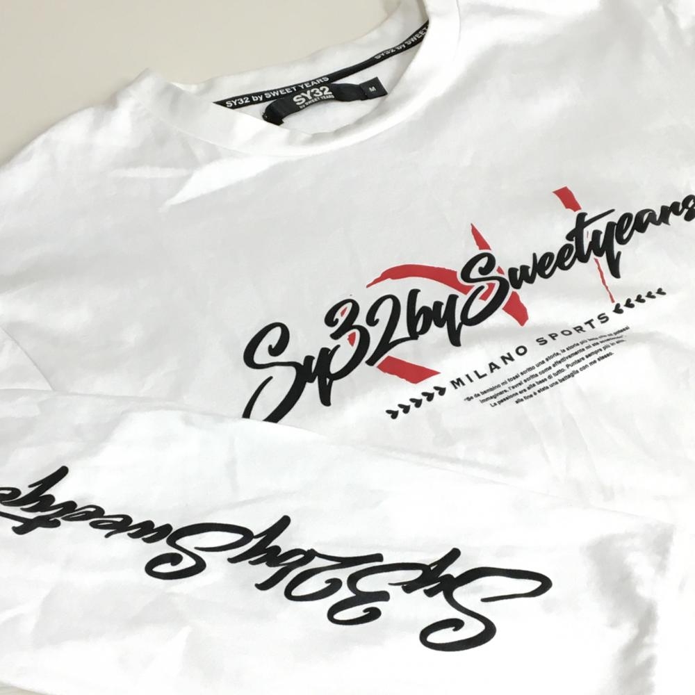 SY32 長袖Tシャツ 白×黒 フロント・袖ロゴプリント メンズ M ゴルフウェア SY32 BY SWEET YEARS
