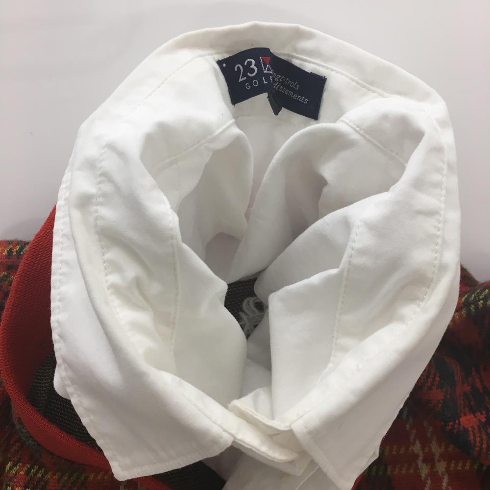 23区ゴルフ 襟付トレーナー レッド×白 チェック 微起毛 襟着脱可 レディース I(M) ゴルフウェア 23区