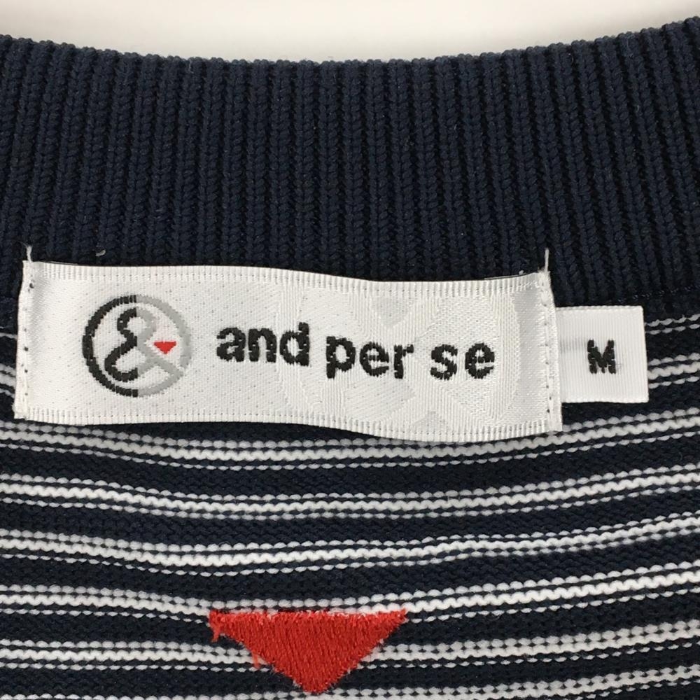 【美品】アンパスィ セーター ネイビー×白 背面ボーダー ニット Vネック ボーダービッグロゴ メンズ M ゴルフウェア and per se