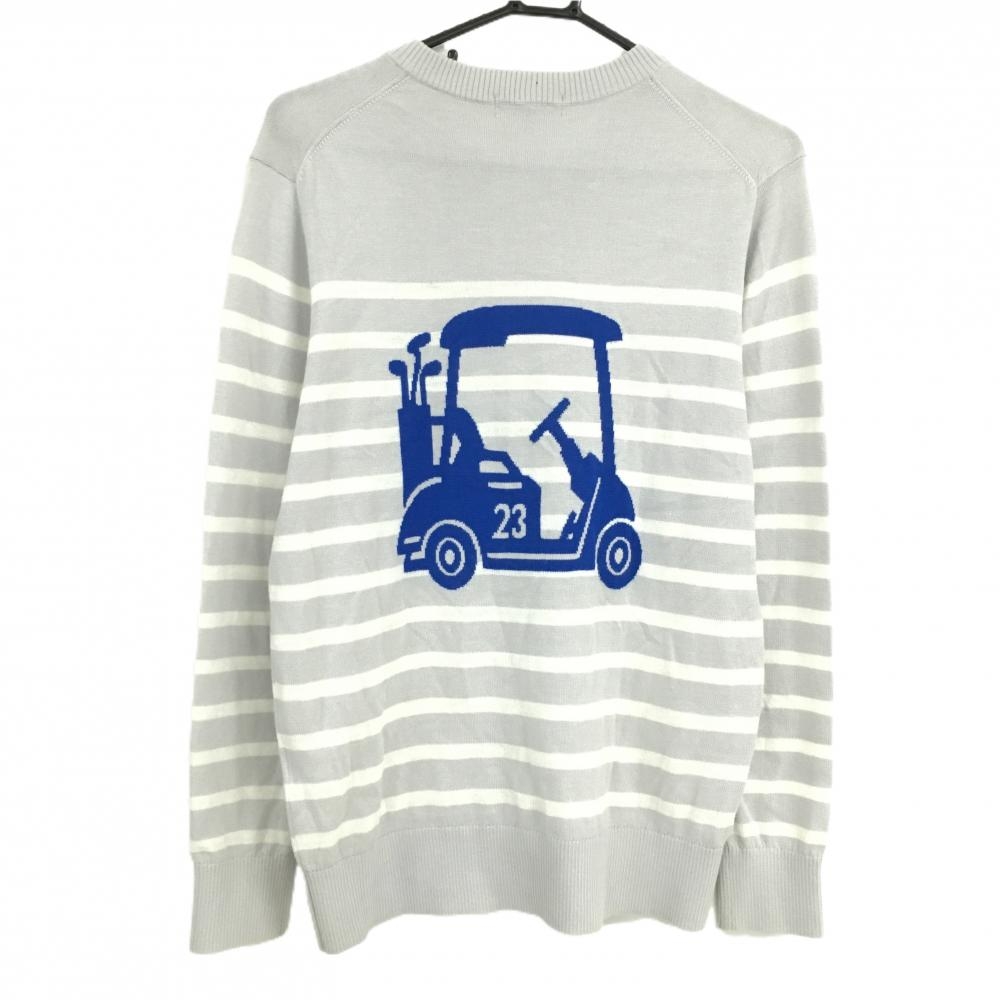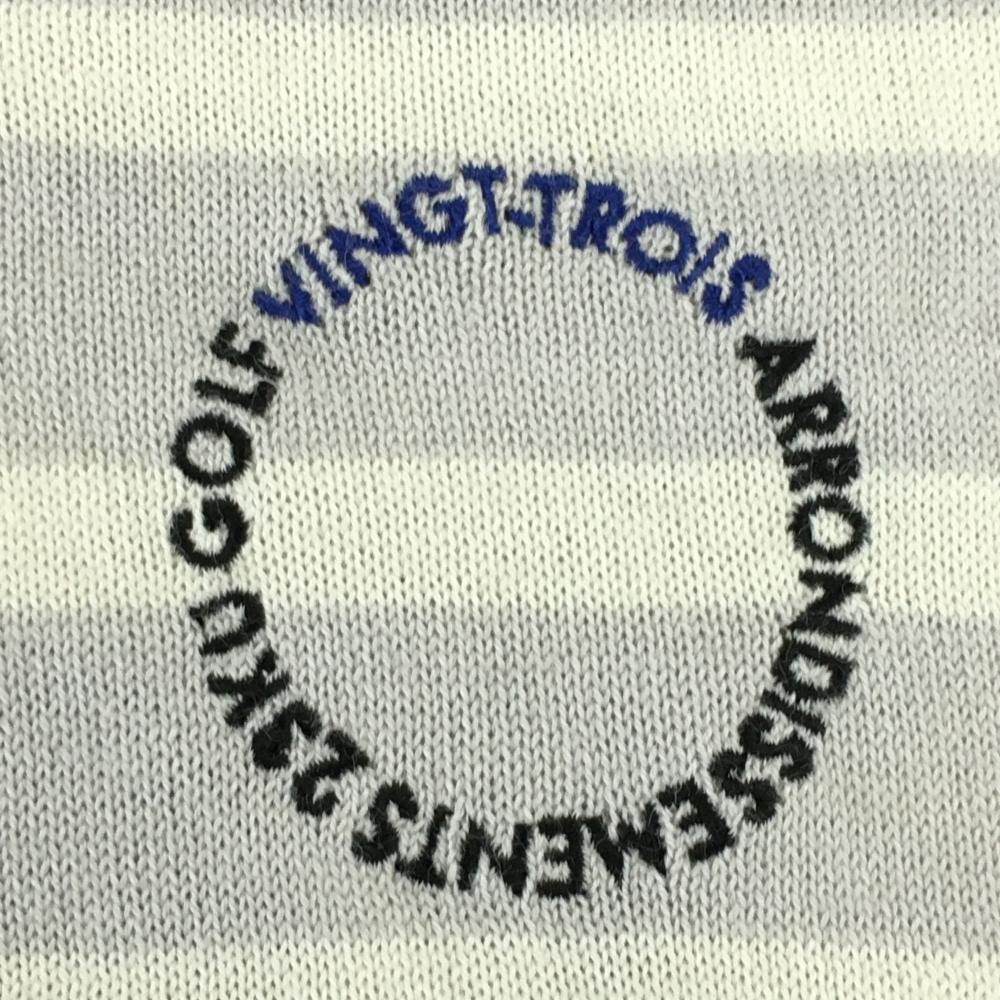 【美品】23区ゴルフ セーター ライトグレー系×白 ボーダー ウール混 ニット Vネック メンズ L ゴルフウェア 23区