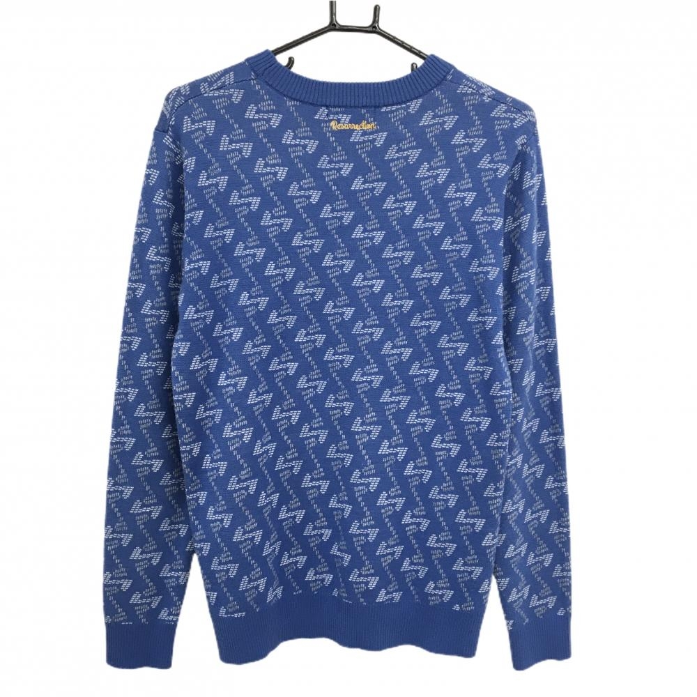 【美品】レザレクション セーター ブルー×白 総柄 ウール混 ニット メンズ M ゴルフウェア Resurrection
