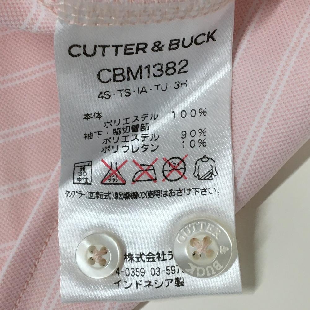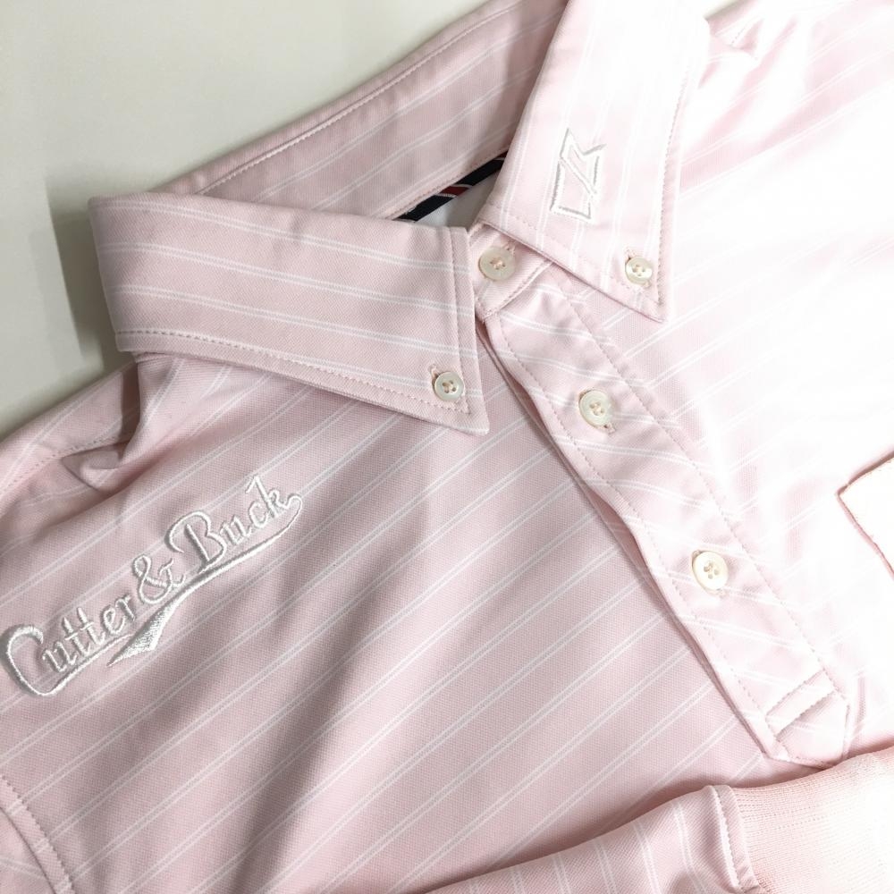 カッターアンドバック 長袖ポロシャツ ピンク×白 ボーダー ロゴ刺しゅう 袖下メッシュ メンズ M ゴルフウェア CUTTER&BUCK
