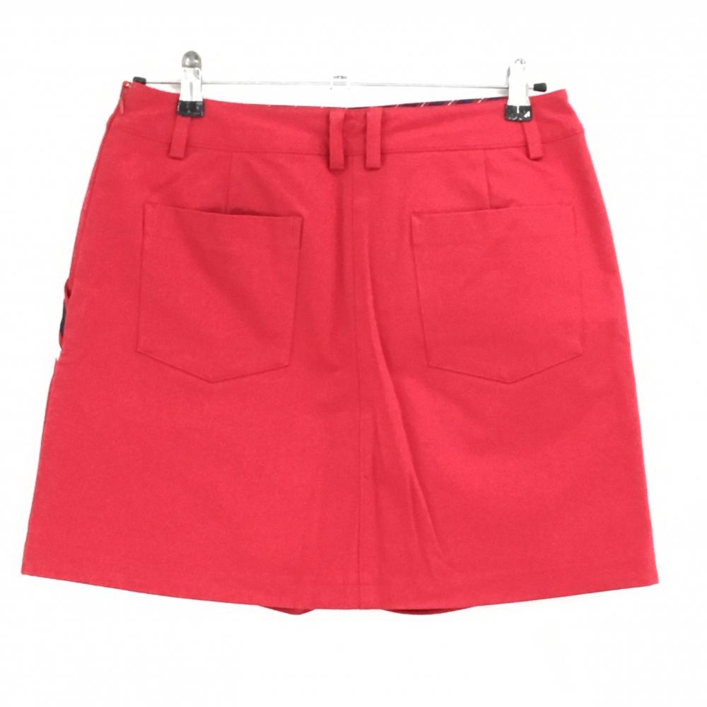 【超美品】キャロウェイ スカート レッド×白 ポケット口2ライン ロゴ刺しゅう 内側インナーパンツ レディース L ゴルフウェア Callaway