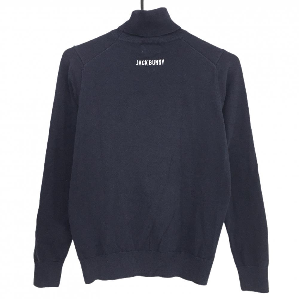 ジャックバニー タートルネックセーター ネイビー×グリーン 胸ロゴ ニット レディース 1(M) ゴルフウェア Jack Bunny