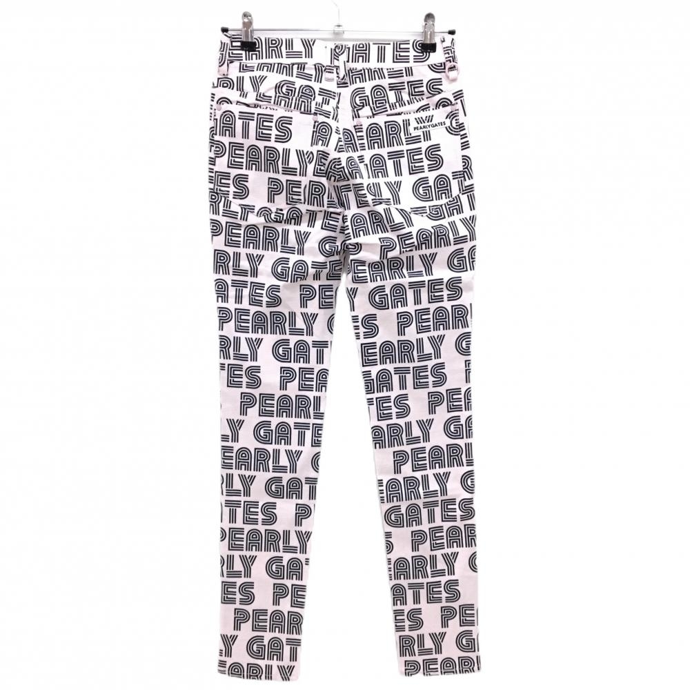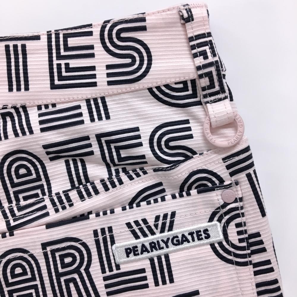 【新品】パーリーゲイツ パンツ ライトピンク×ダークネイビー ロゴ総柄 ボーダー織生地 レディース 0(S) ゴルフウェア PEARLY GATES