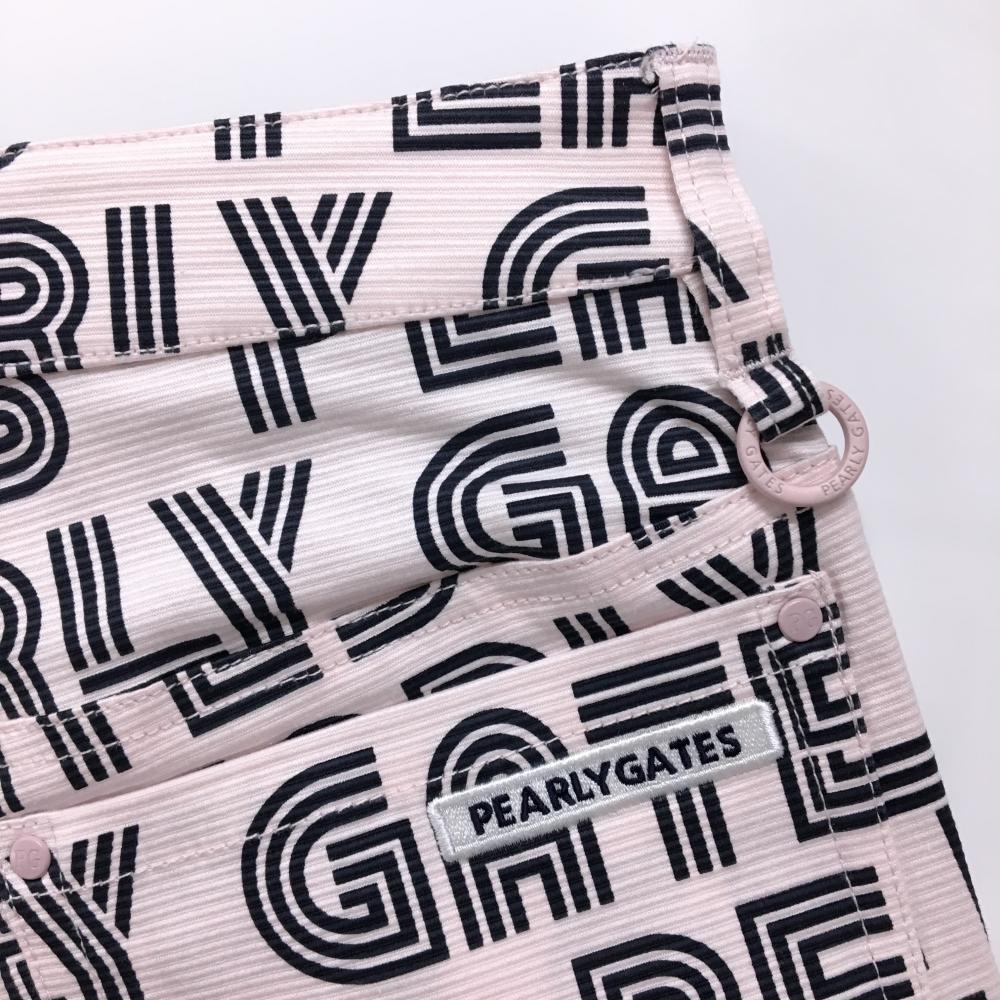 【新品】パーリーゲイツ パンツ ライトピンク×ダークネイビー ロゴ総柄 ボーダー織生地 レディース 00(XS) ゴルフウェア PEARLY GATES