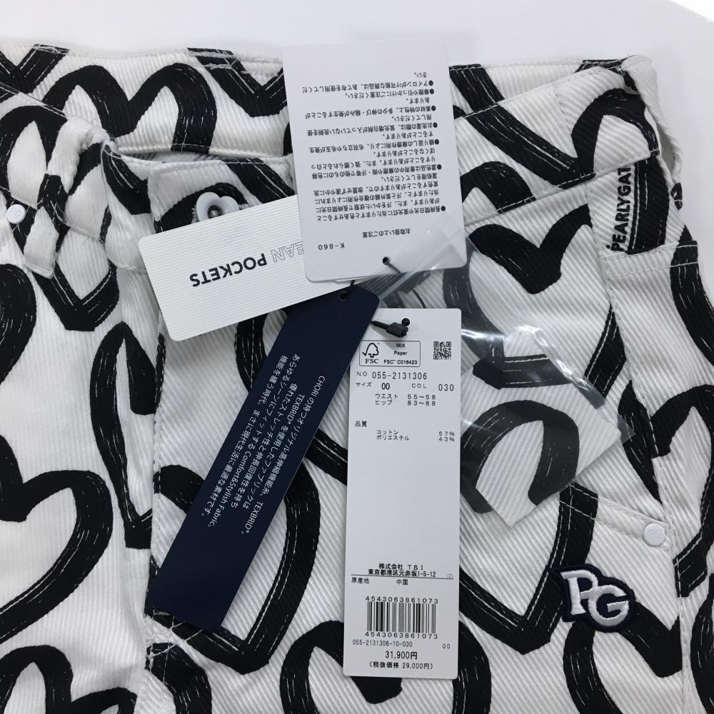 【新品】パーリーゲイツ パンツ 白×黒 ハート柄 ロゴ刺しゅう レディース 00(XS) ゴルフウェア PEARLY GATES