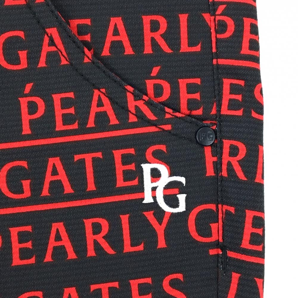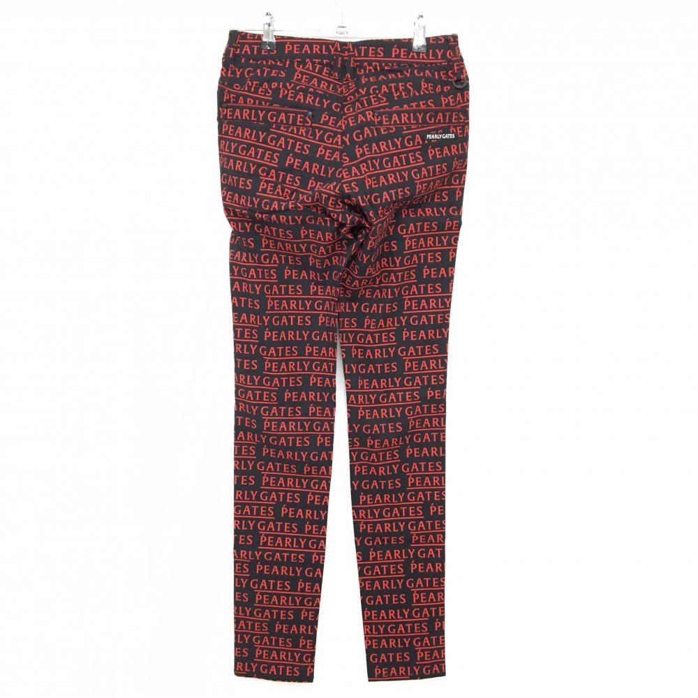 【新品】パーリーゲイツ パンツ 黒×レッド ロゴ総柄 刺しゅう白 レディース 0(S) ゴルフウェア PEARLY GATES