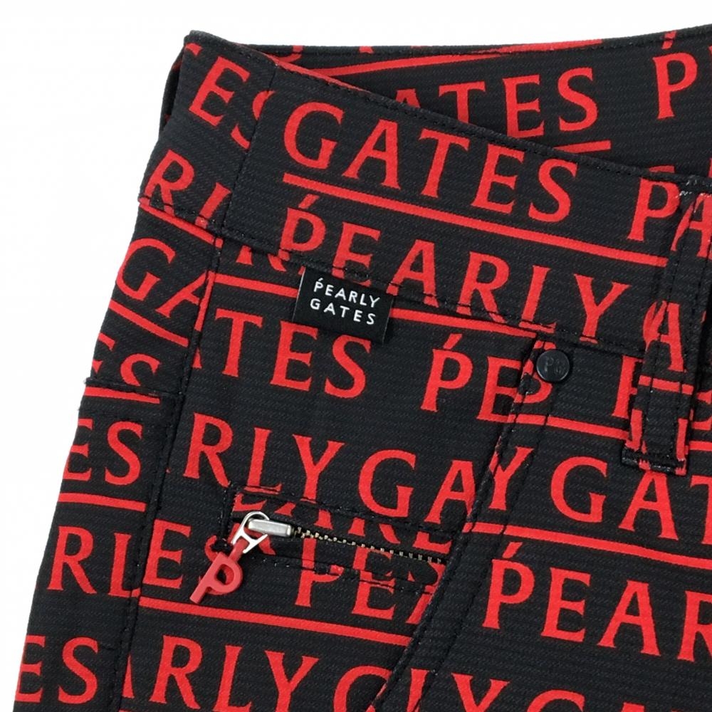 【新品】パーリーゲイツ パンツ 黒×レッド ロゴ総柄 刺しゅう白 レディース 00(XS) ゴルフウェア PEARLY GATES