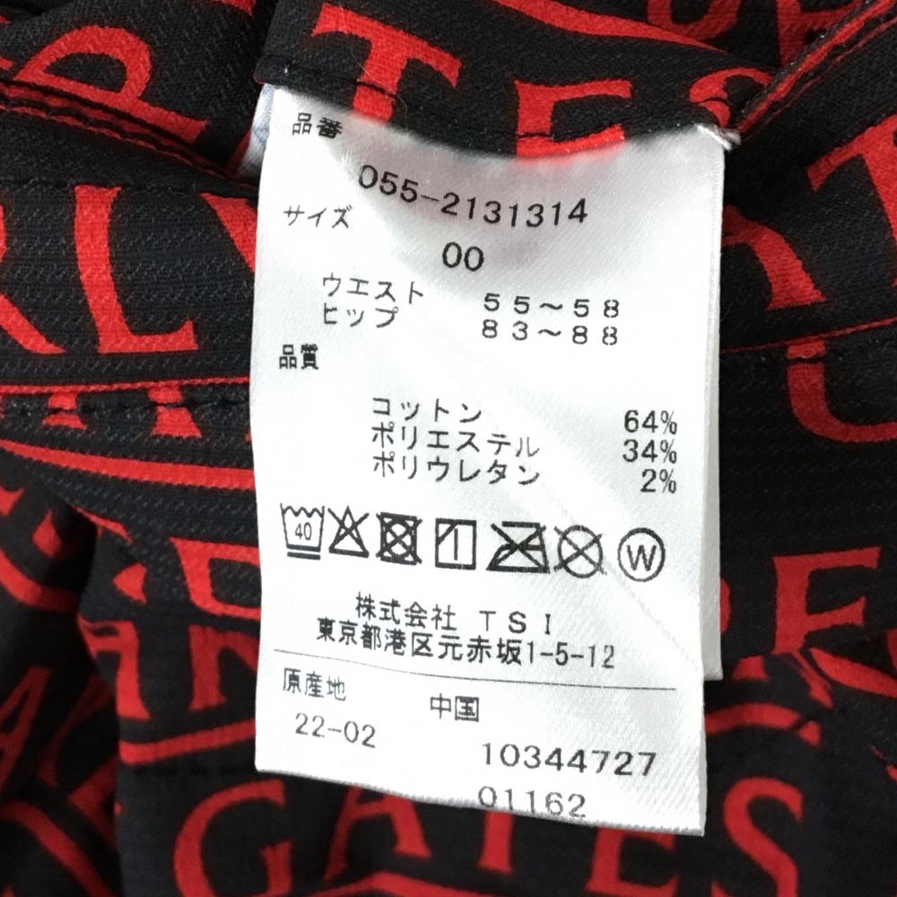 【新品】パーリーゲイツ パンツ 黒×レッド ロゴ総柄 刺しゅう白 レディース 00(XS) ゴルフウェア PEARLY GATES
