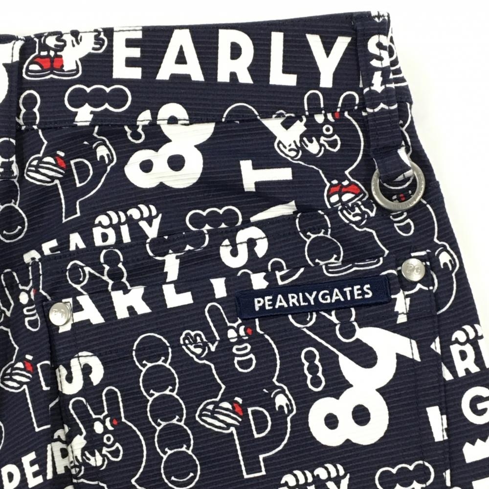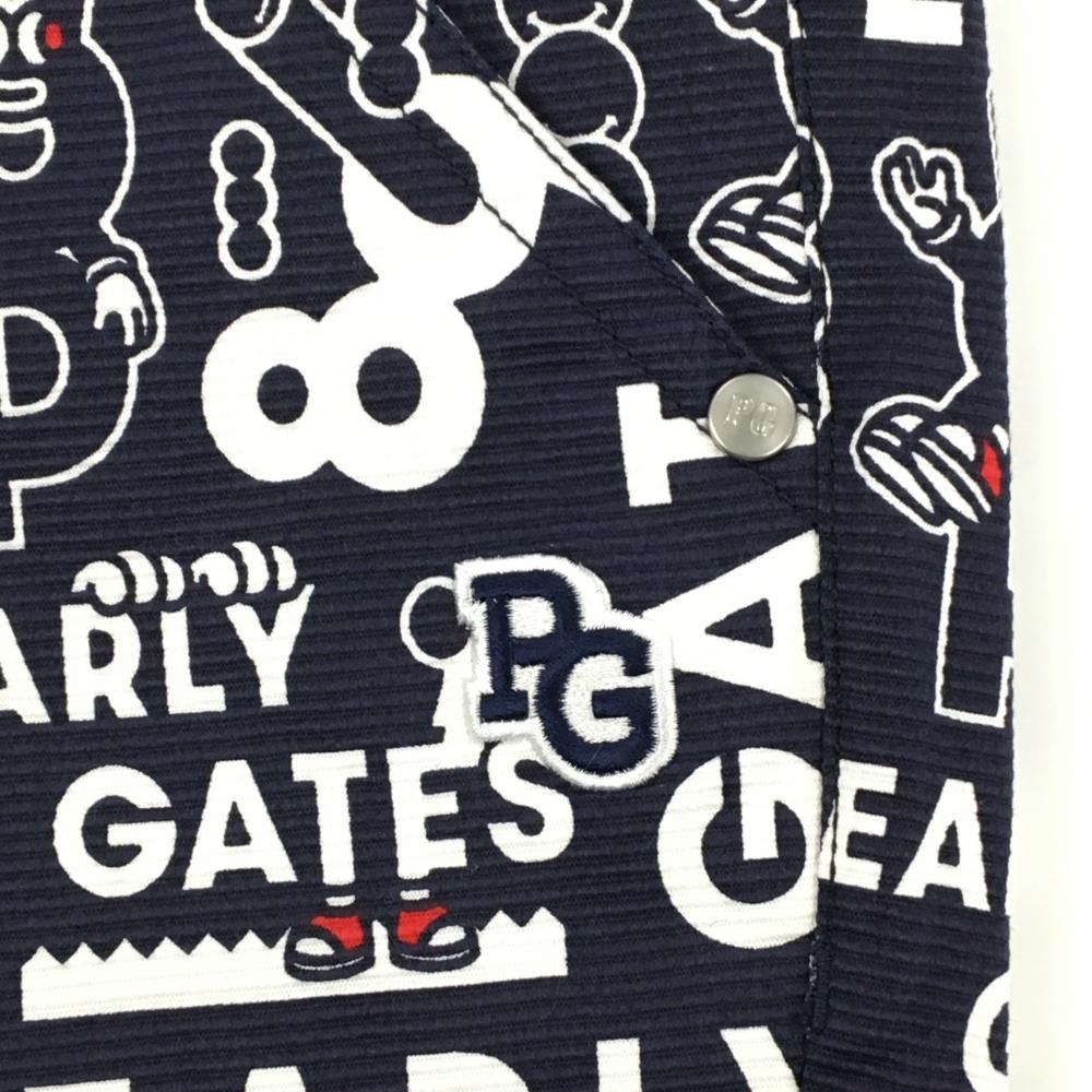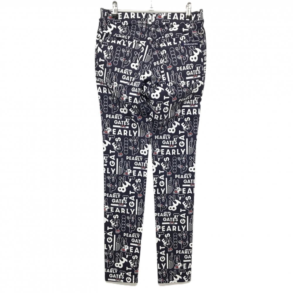 【新品】パーリーゲイツ パンツ ネイビー×白 ロゴ総柄 どうしちゃったPG ボーダー織生地 レディース 0(S) ゴルフウェア PEARLY GATES