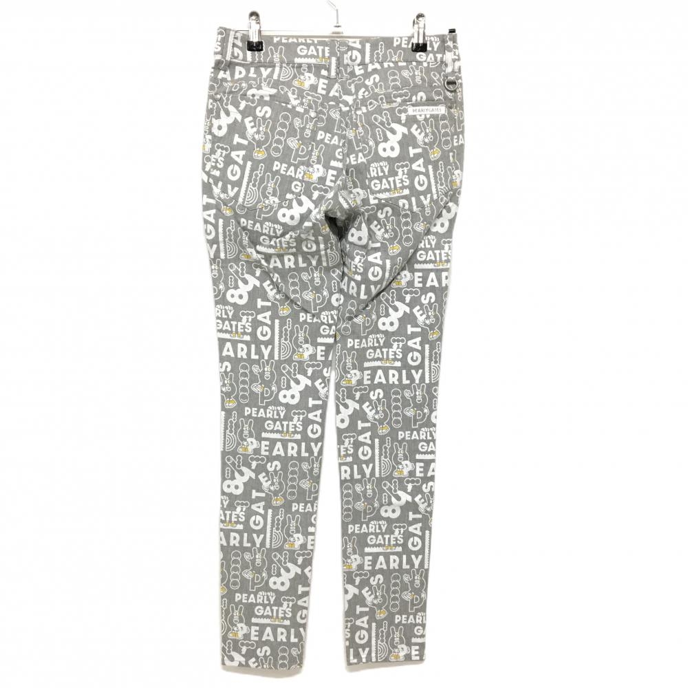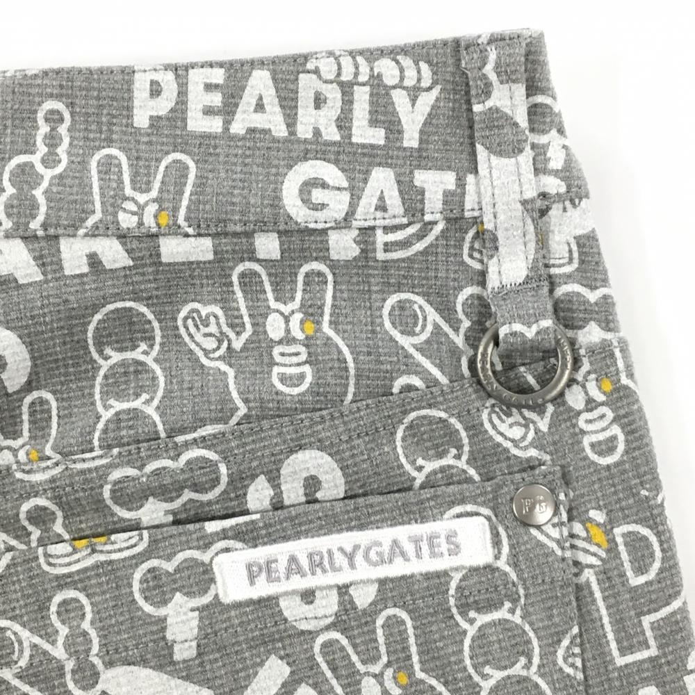 【新品】パーリーゲイツ パンツ グレー×白 ロゴ総柄 どうしちゃったPG ボーダー織生地 レディース 0(S) ゴルフウェア PEARLY GATES