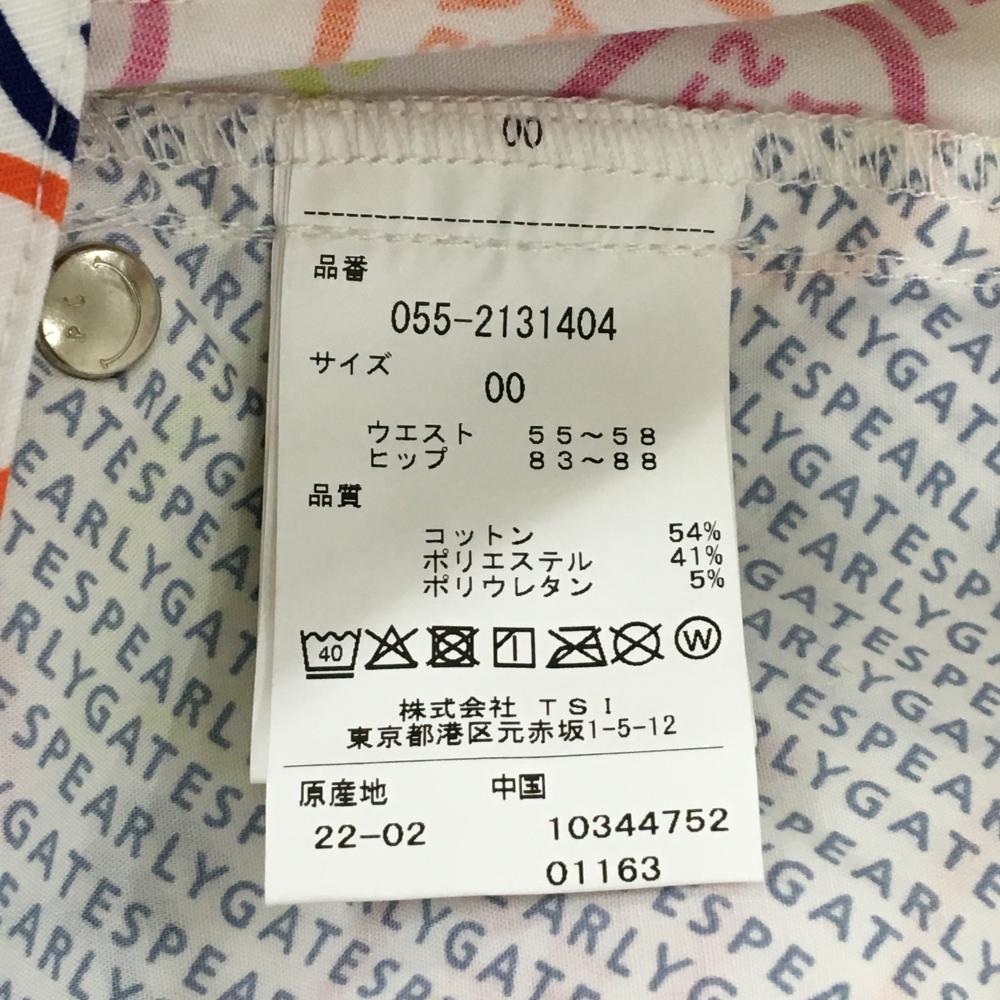 【新品】パーリーゲイツ パンツ 白×マルチカラー ハートロゴ総柄 ストレッチ レディース 00(XS) ゴルフウェア PEARLY GATES