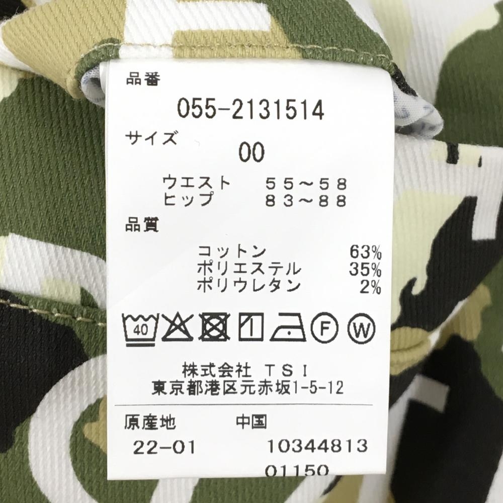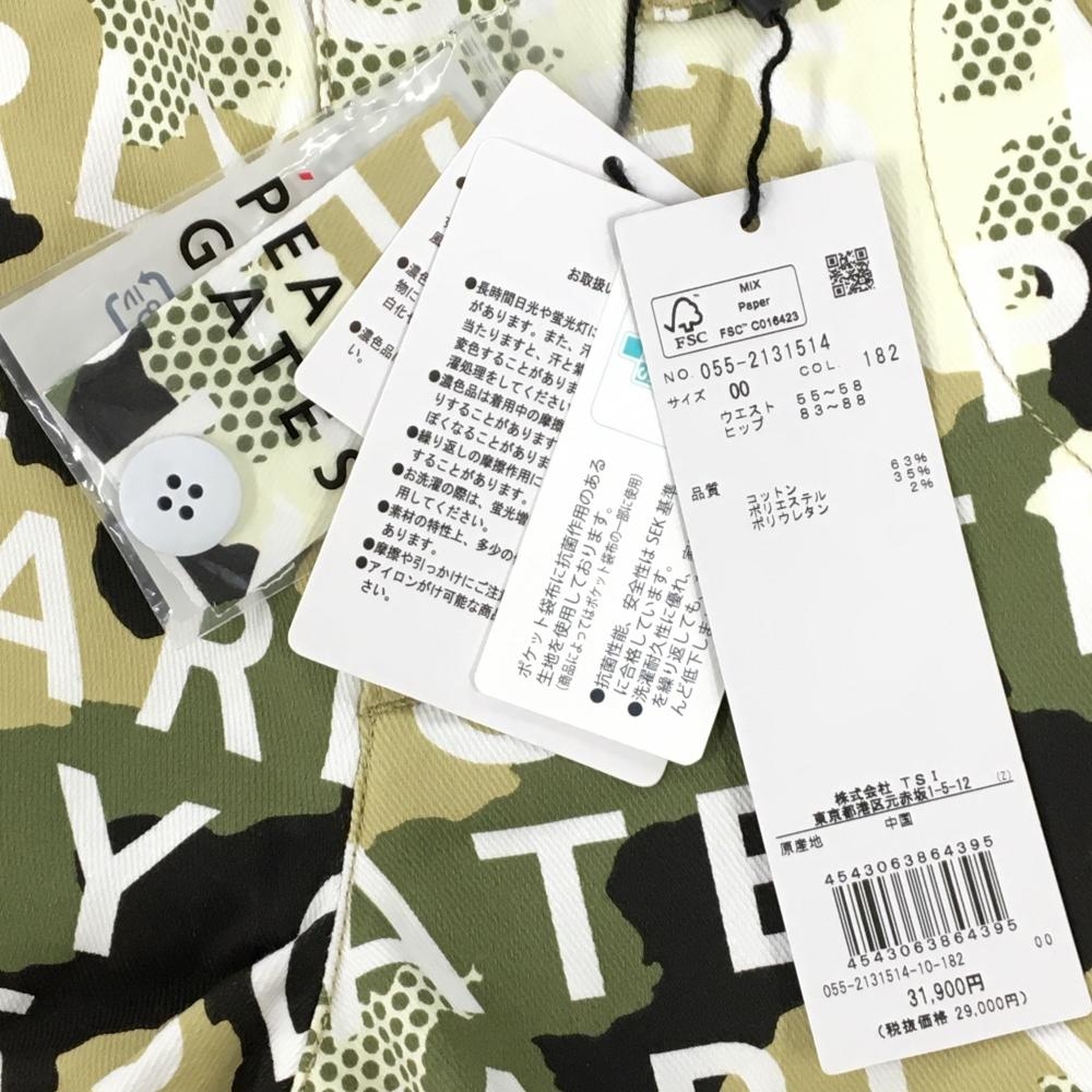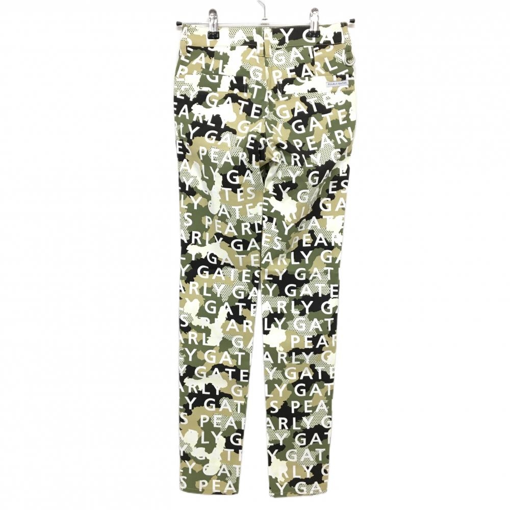 【新品】パーリーゲイツ パンツ カーキ×白 ロゴ総柄 カモフラ調 迷彩 ロゴ刺しゅう レディース 00(XS) ゴルフウェア PEARLY GATES