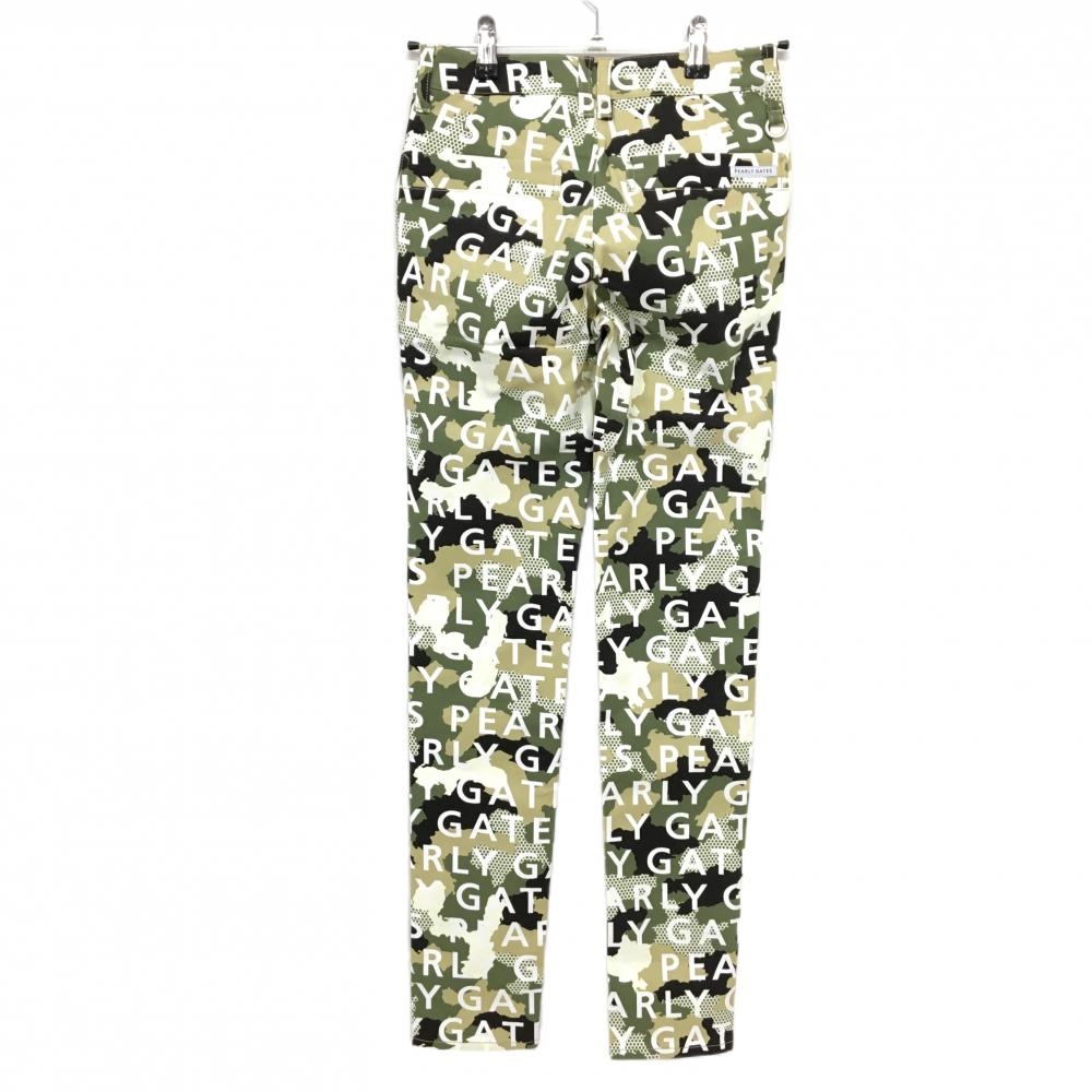 【新品】パーリーゲイツ パンツ カーキ×白 ロゴ総柄 カモフラ調 迷彩 ロゴ刺しゅう レディース 00(XS) ゴルフウェア PEARLY GATES