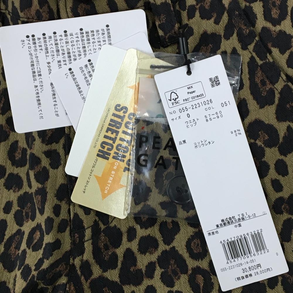 【新品】パーリーゲイツ パンツ ベージュ系×黒 レオパード ロゴ白 ストレッチ レディース 0(S) ゴルフウェア PEARLY GATES