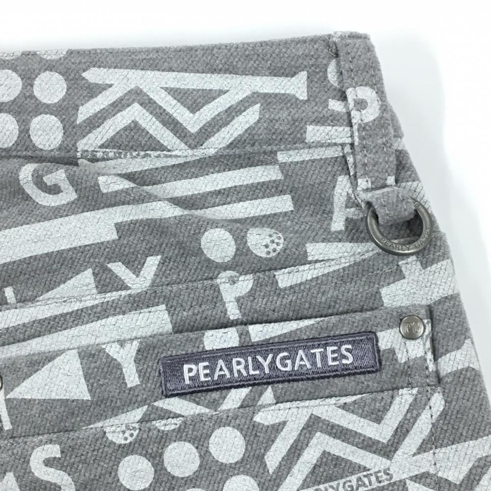 【新品】パーリーゲイツ パンツ グレー×白 総柄 ロゴ刺しゅう ストレッチ 表微起毛 レディース 00(XS) ゴルフウェア PEARLY GATES
