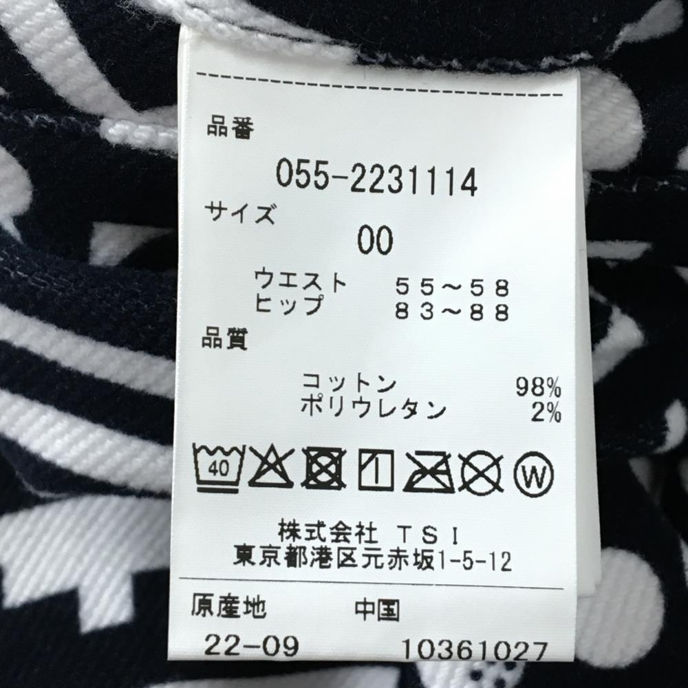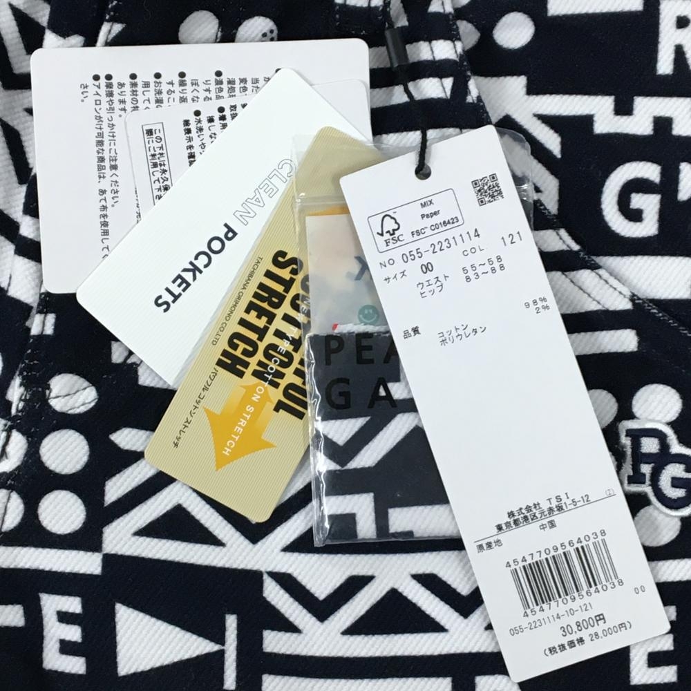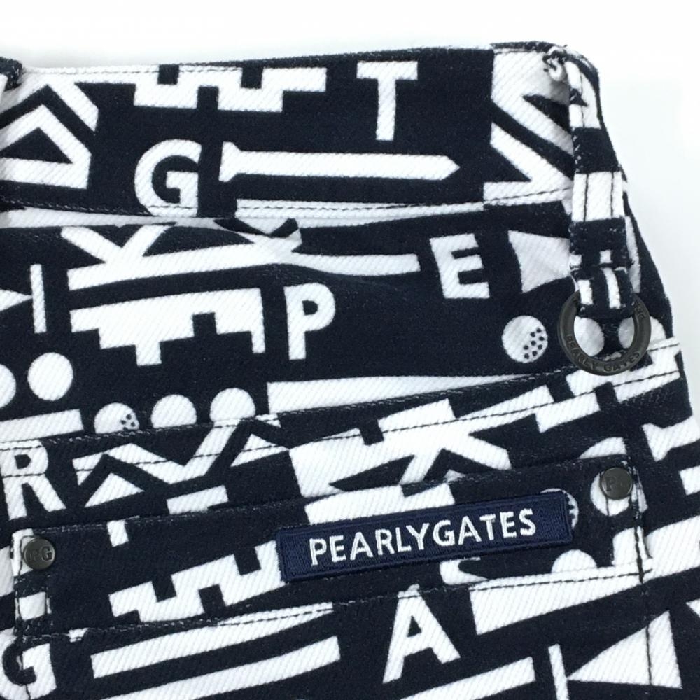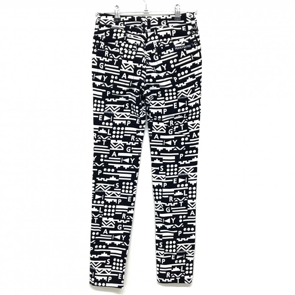 【新品】パーリーゲイツ パンツ ネイビー×白 総柄 ロゴ刺しゅう ストレッチ 表微起毛 レディース 00(XS) ゴルフウェア PEARLY GATES