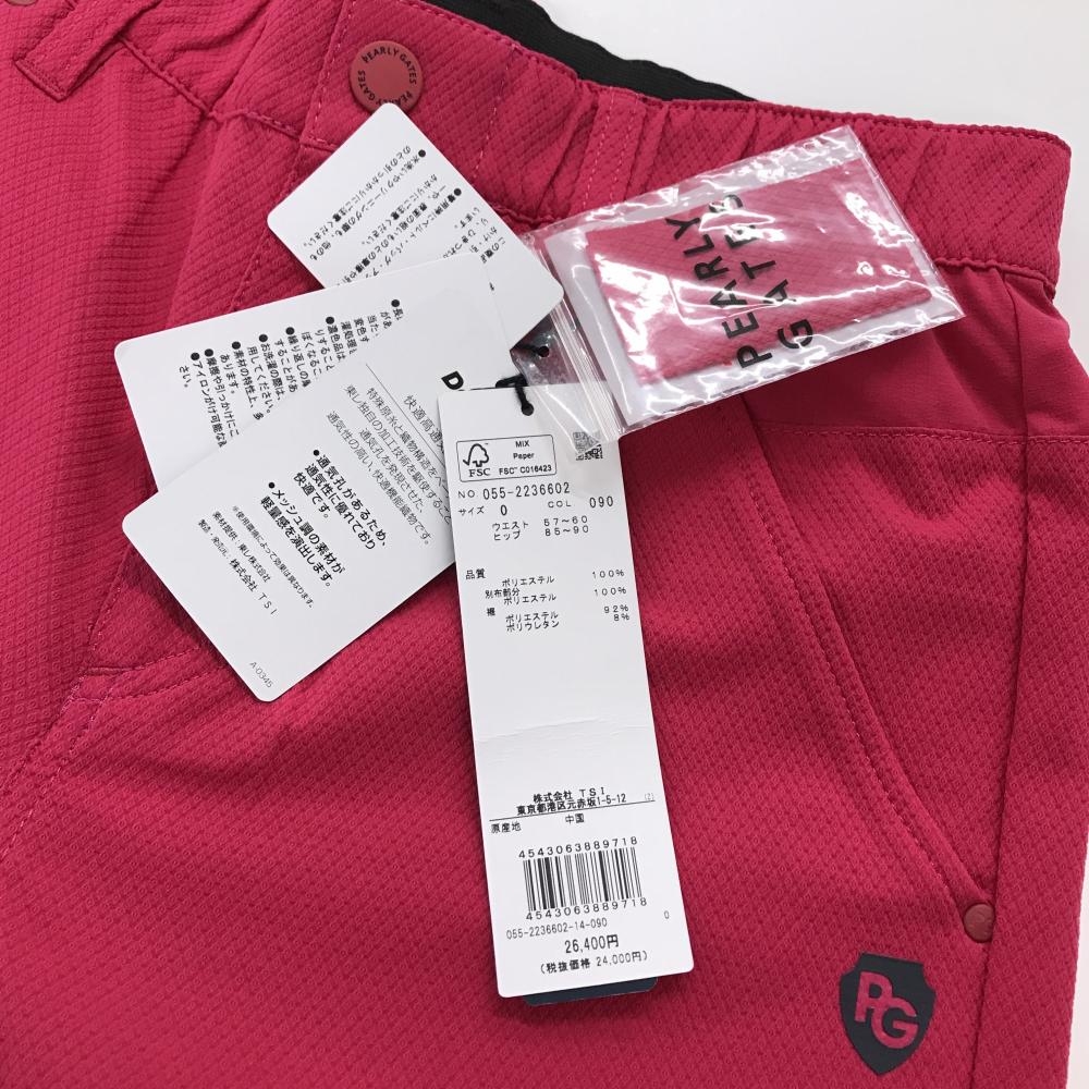 【新品】パーリーゲイツ ジョガーパンツ ピンク×ネイビー ダイヤ柄織生地 ロゴプリント レディース 0(S) ゴルフウェア PEARLY GATES