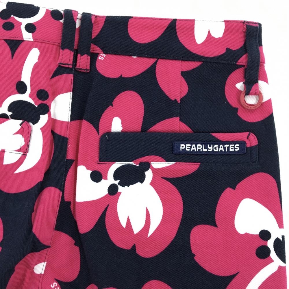 【新品】パーリーゲイツ パンツ ネイビー×ピンク 花柄 ロゴ刺しゅう レディース 0(S) ゴルフウェア PEARLY GATES
