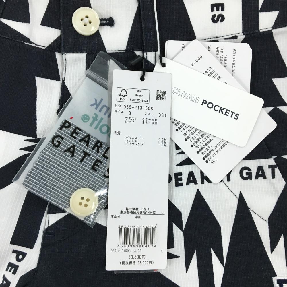 【新品】パーリーゲイツ パンツ 白×ネイビー ヤジルシ柄 ロゴ刺しゅう レディース 0(S) ゴルフウェア PEARLY GATES