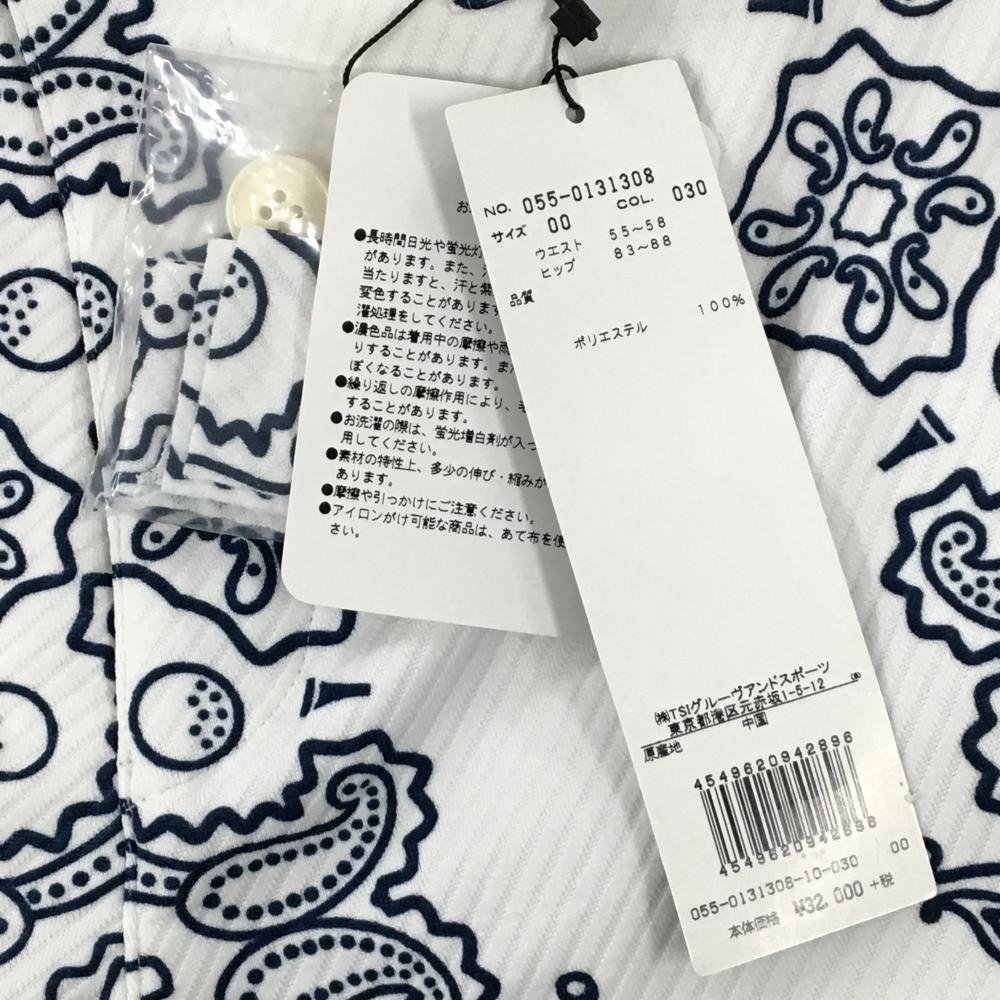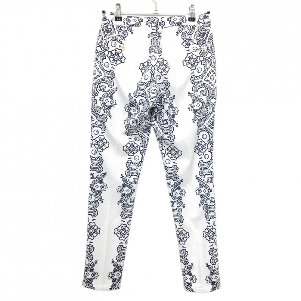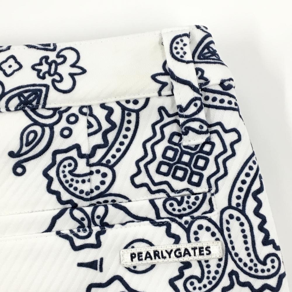 【新品】パーリーゲイツ パンツ 白×ネイビー ペイズリー調 PGニコちゃん レディース 00(XS) ゴルフウェア PEARLY GATES