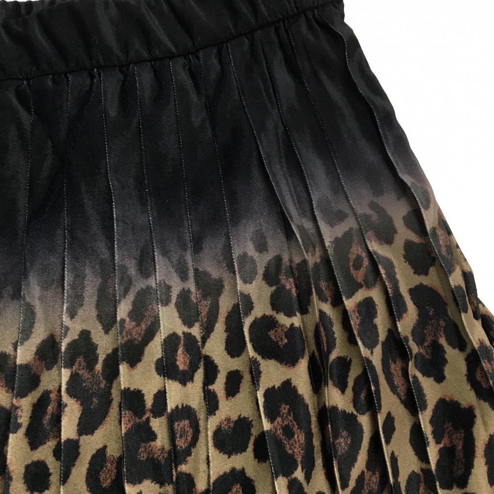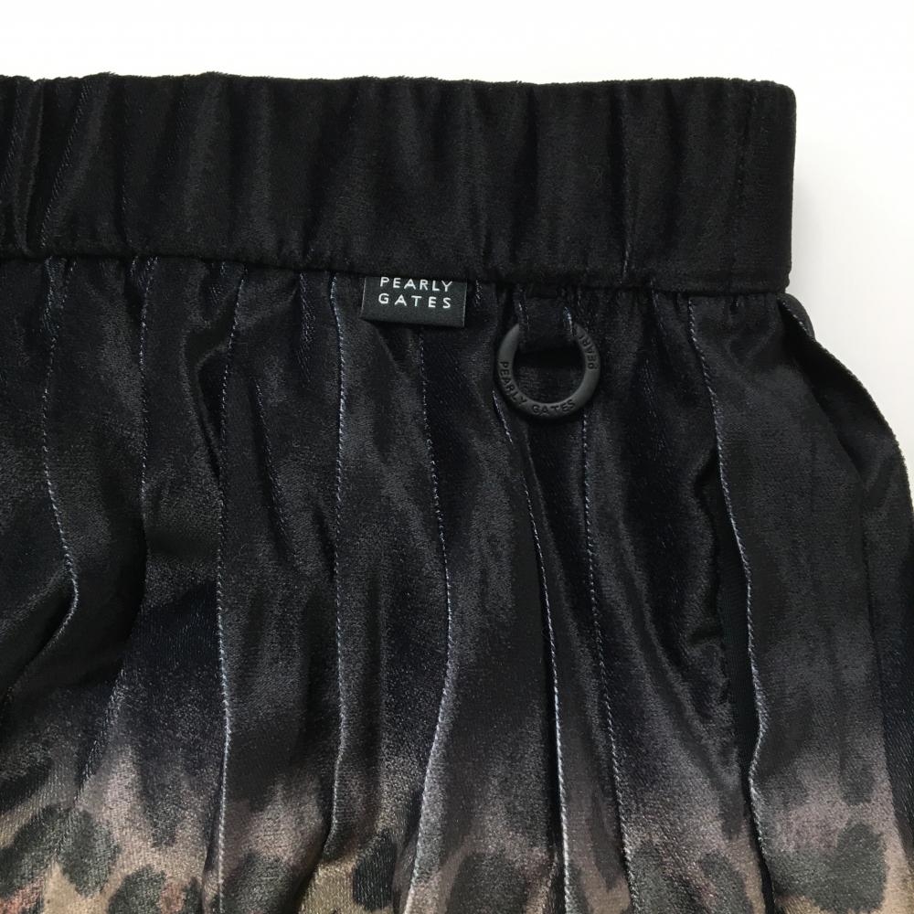 【新品】パーリーゲイツ プリーツスカート ベージュ系×黒 レオパード柄 表微起毛 ひざ丈 レディース 1(M) ゴルフウェア PEARLY GATES