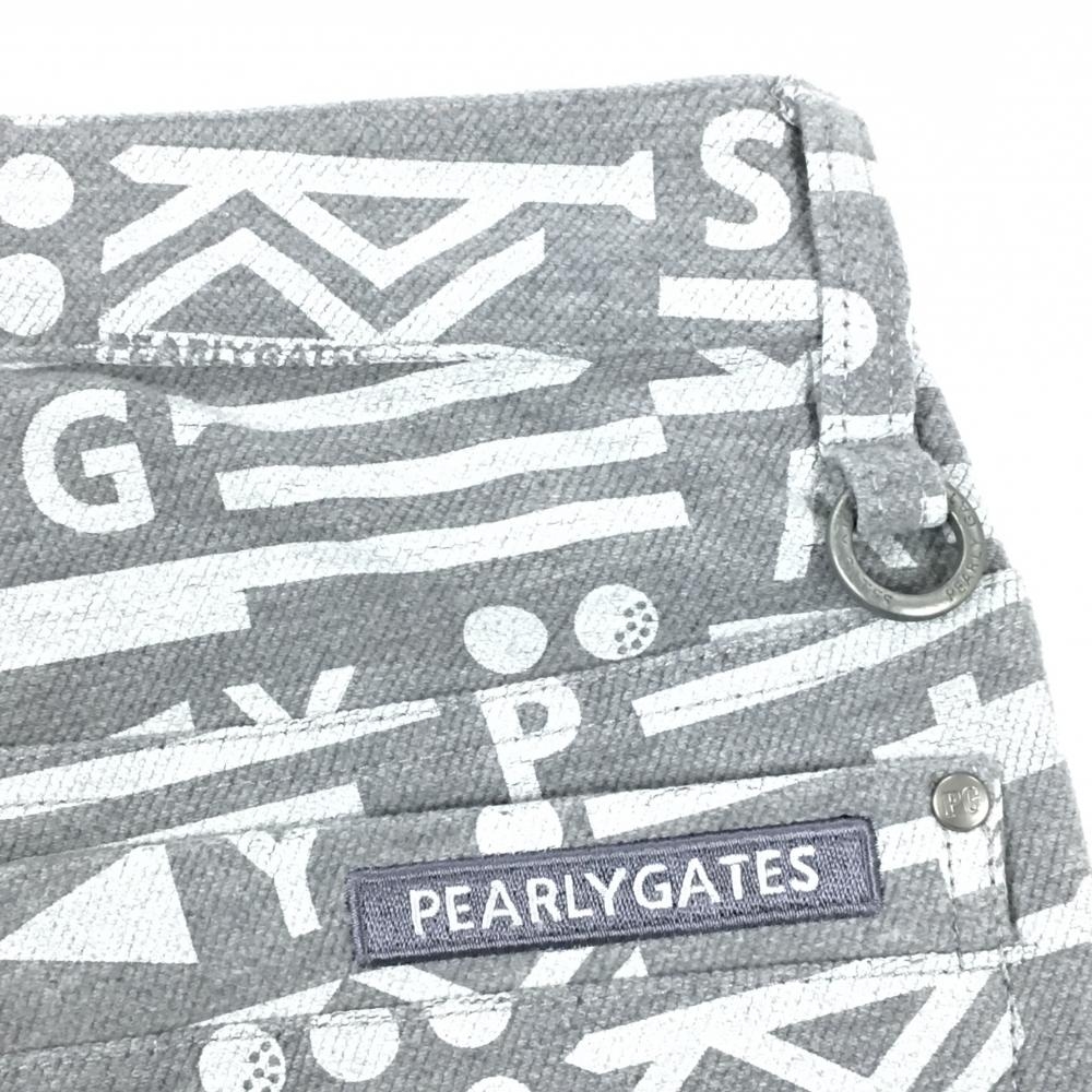 【新品】パーリーゲイツ パンツ グレー×白 総柄 ロゴ刺しゅう ストレッチ 表微起毛 レディース 00(XS) ゴルフウェア PEARLY GATES