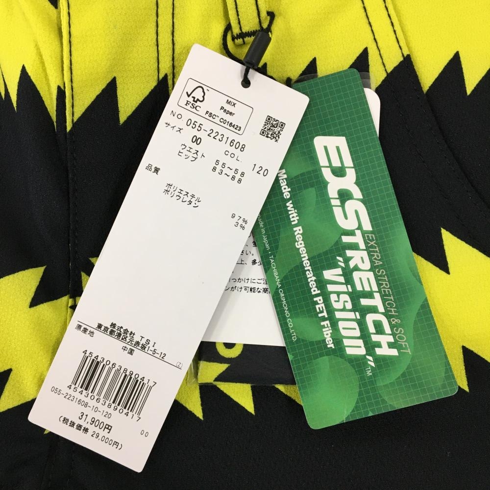 【新品】パーリーゲイツ パンツ 黒×イエロー 稲妻 ギザギザボーダー ストレッチ レディース 00(XS) ゴルフウェア PEARLY GATES