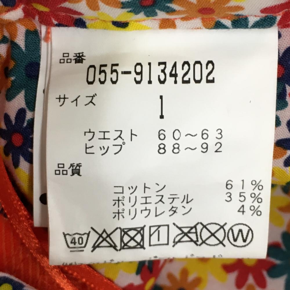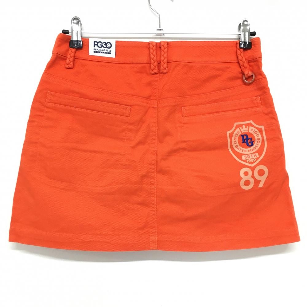 パーリーゲイツ スカート オレンジ 前ボタン ベルト部裏花柄 30周年 レディース 1(M) ゴルフウェア PEARLY GATES