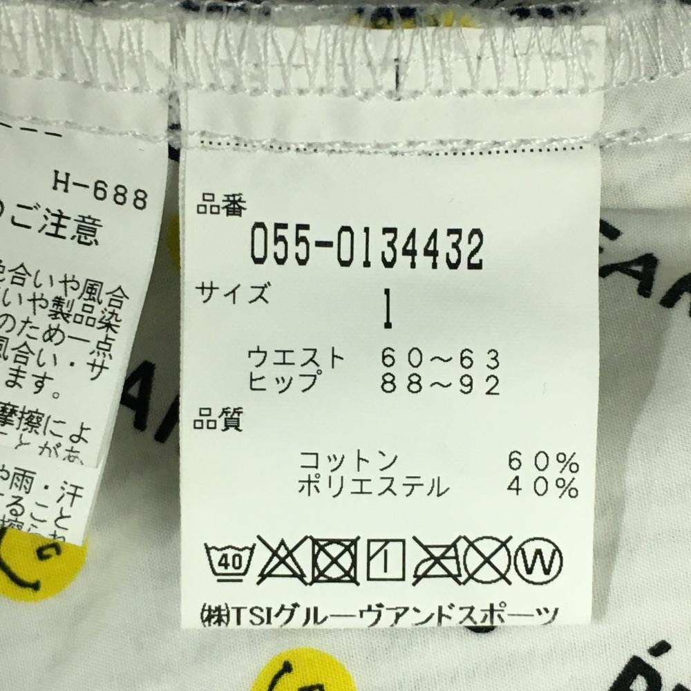 【美品】パーリーゲイツ スカート 白×ネイビー ストライプ ニコちゃん総柄 レディース 1(M) ゴルフウェア PEARLY GATES
