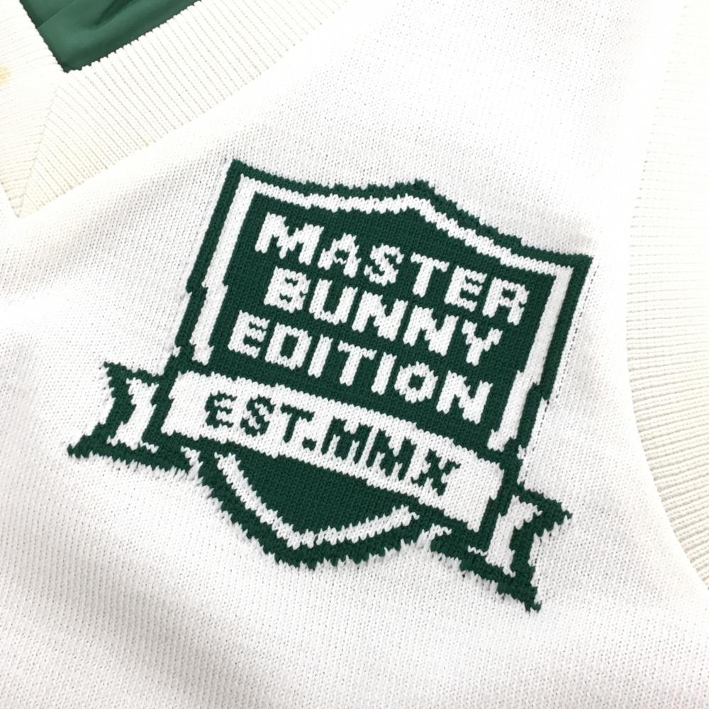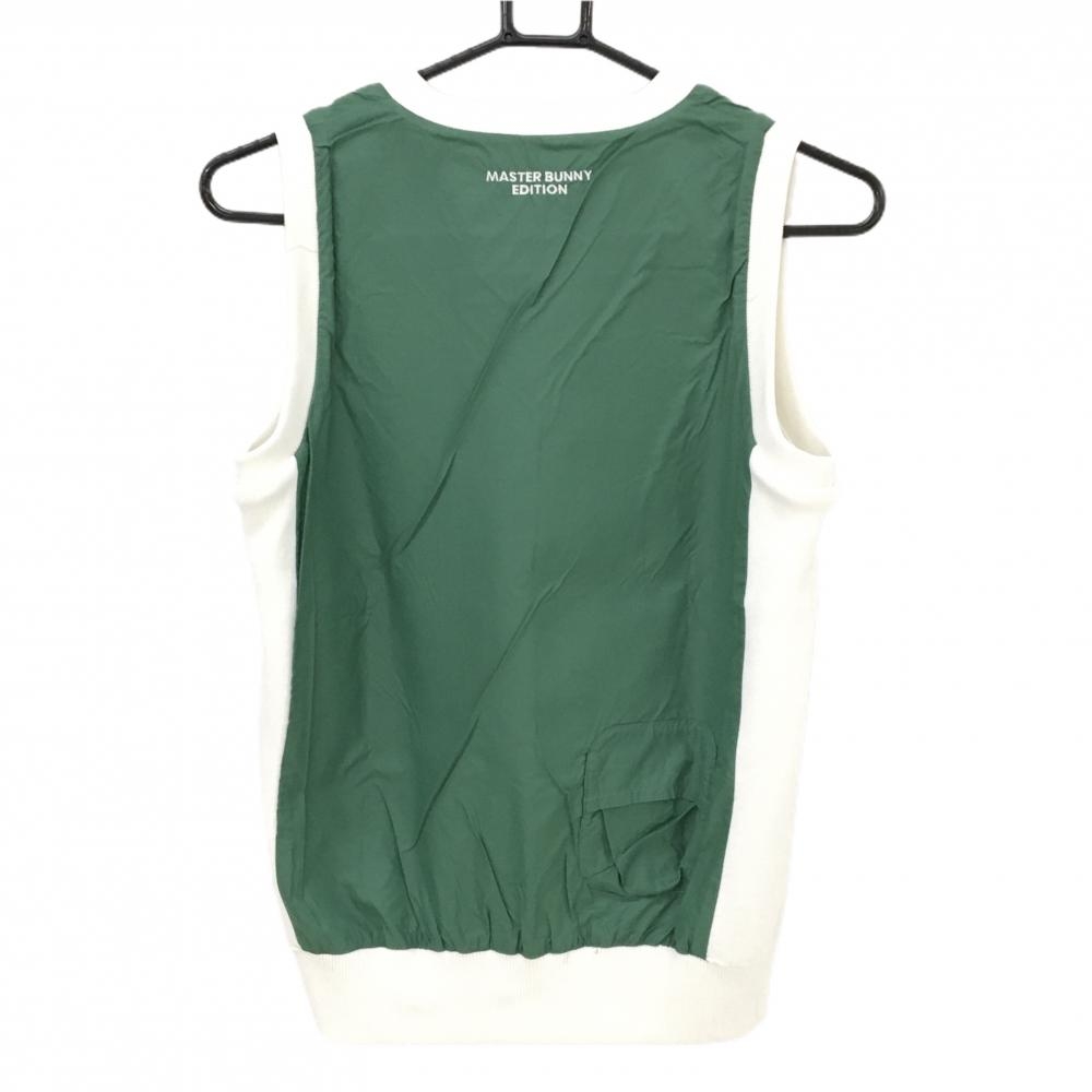 マスターバニー リバーシブルニットベスト 白×グリーン 裏グリーン Vネック レディース 0(S) ゴルフウェア MASTER BUNNY EDITION