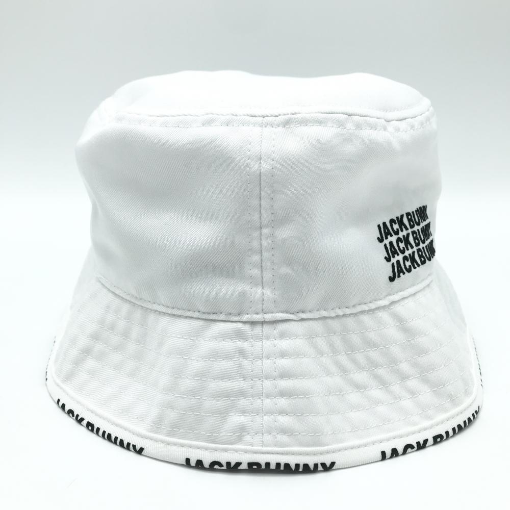 【美品】ジャックバニー バケットハット 白×黒 ロゴ刺しゅう FR ゴルフウェア Jack Bunny