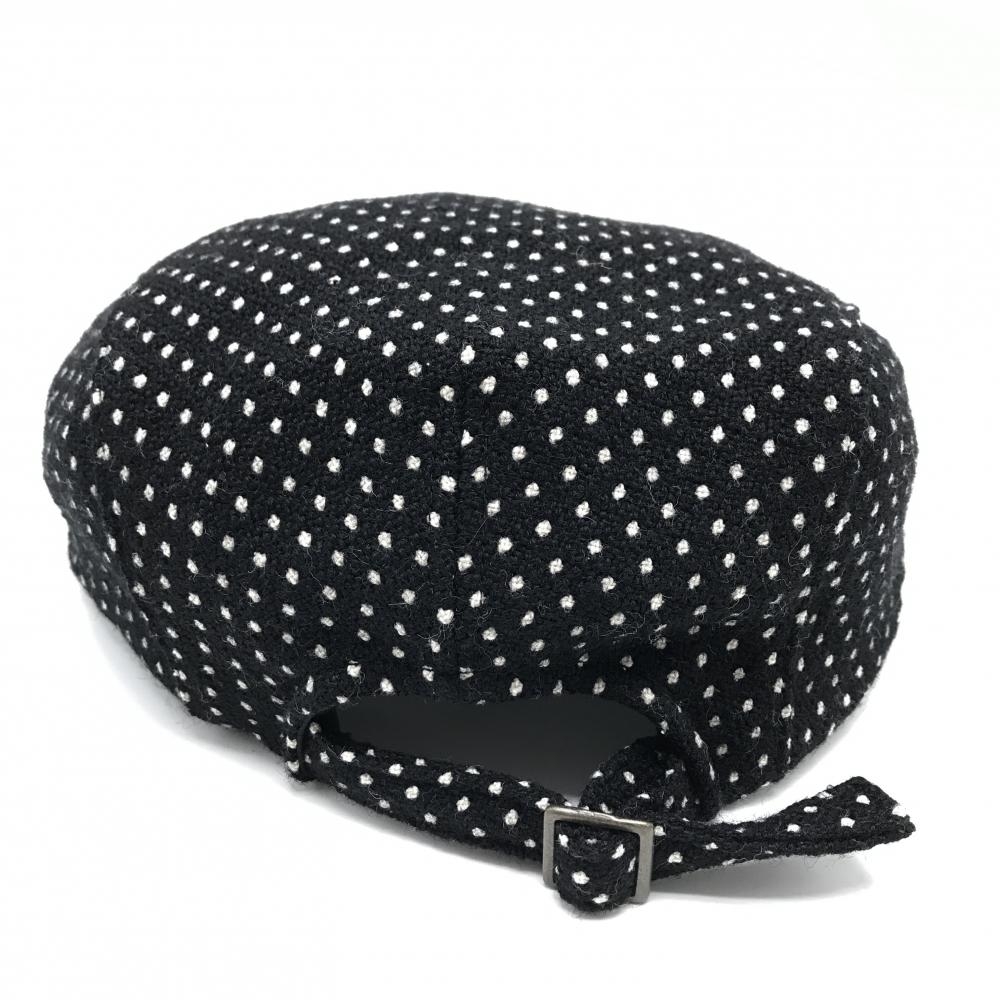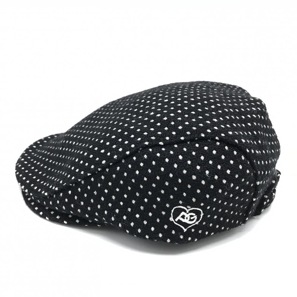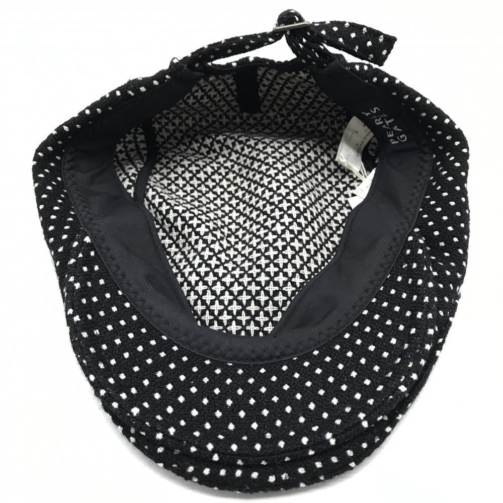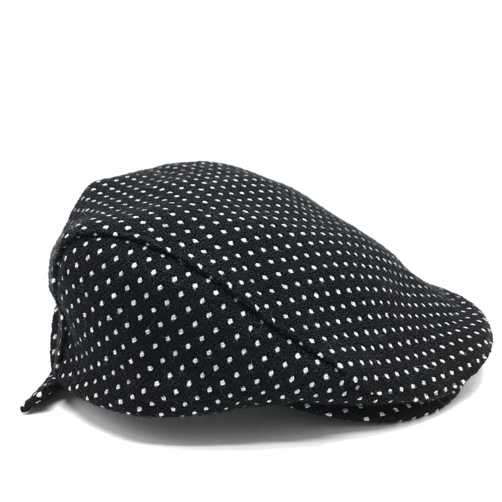 【未使用品】パーリーゲイツ ハンチング帽 黒×白 ドット ウール混 S ゴルフウェア PEARLY GATES