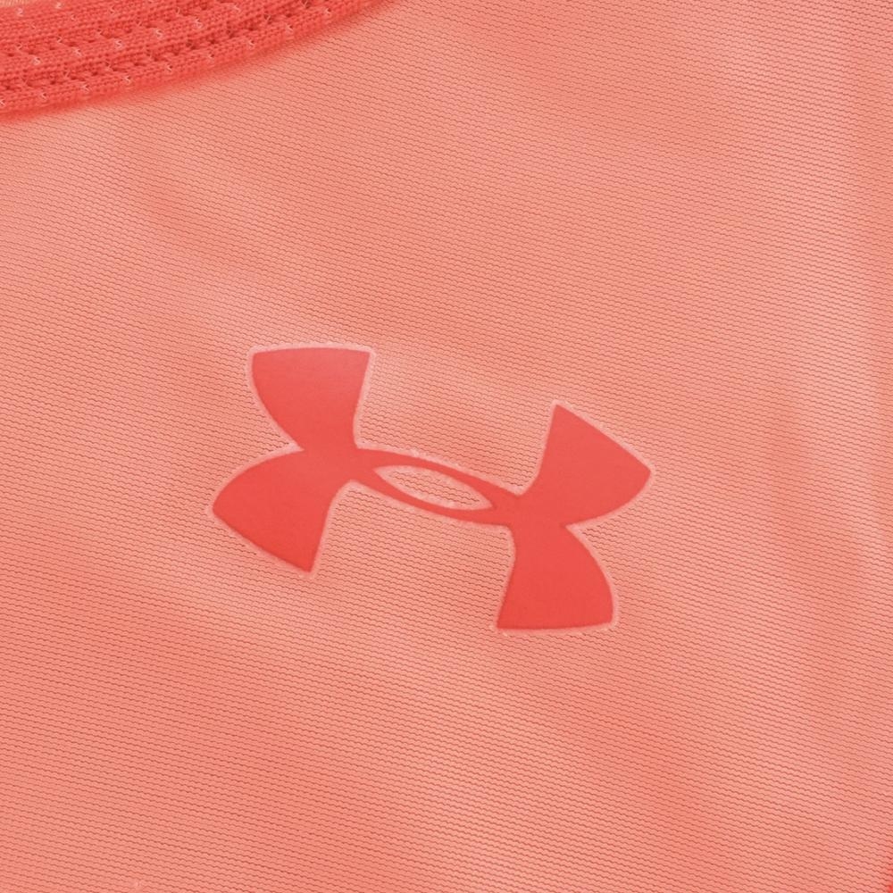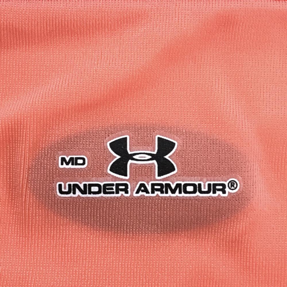 【超美品】アンダーアーマー インナーシャツ オレンジ 袖一部メッシュ ロゴプリント ストレッチ レディース ゴルフウェア UNDER ARMOUR